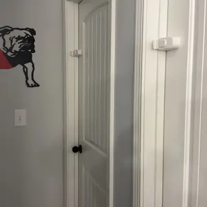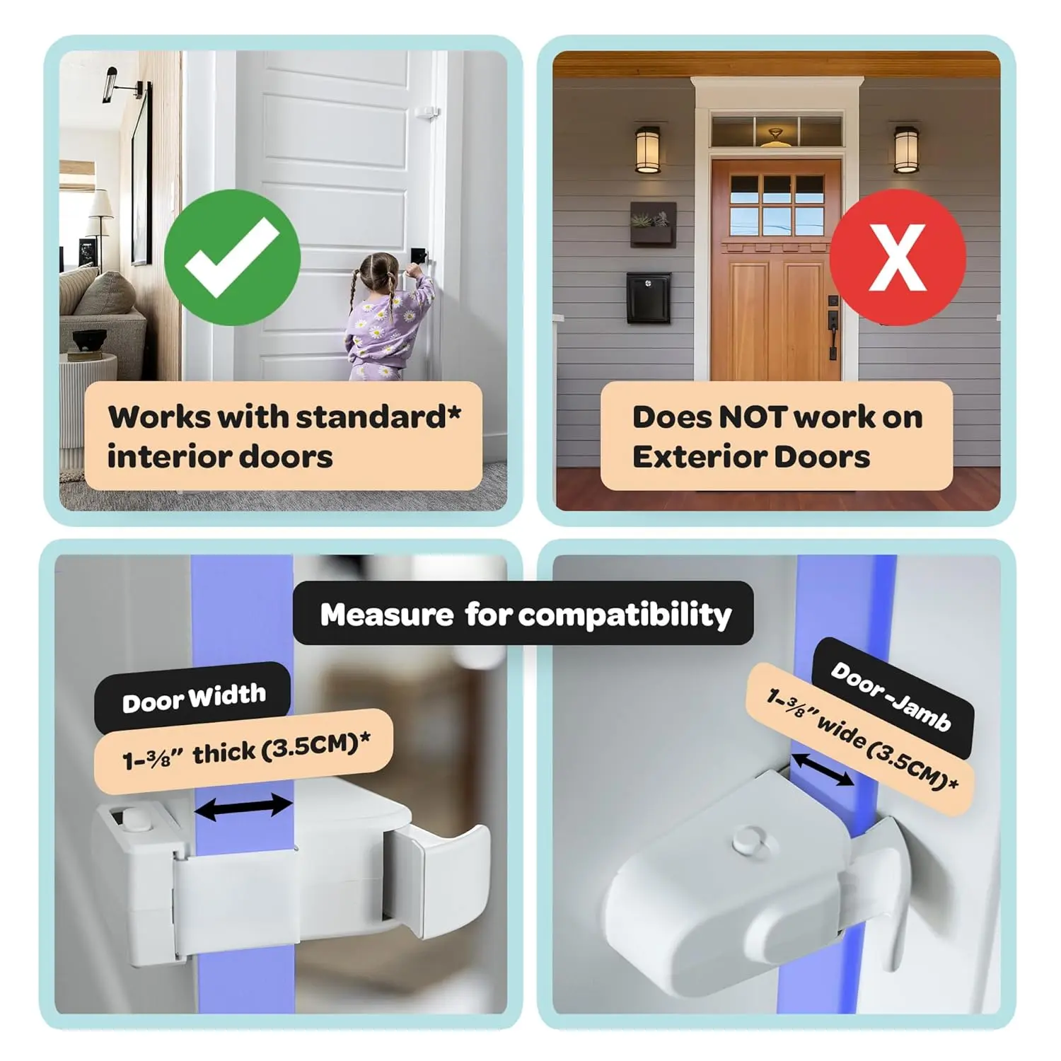 These are brilliant. They don’t require you to attach them to the door with anything that could damage the finish. You can place them on the very top of the door if needed. Great for keeping my toddler out of his big brother’s room.