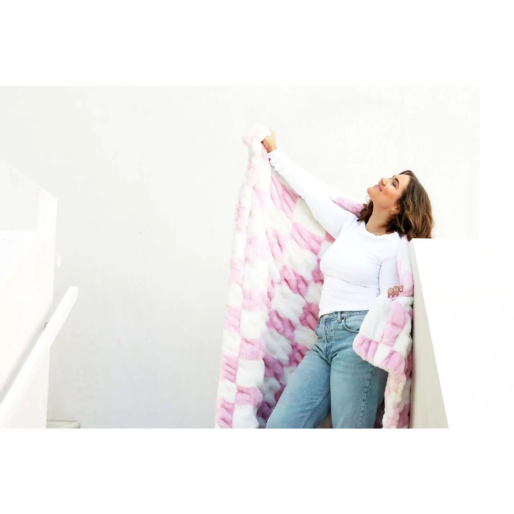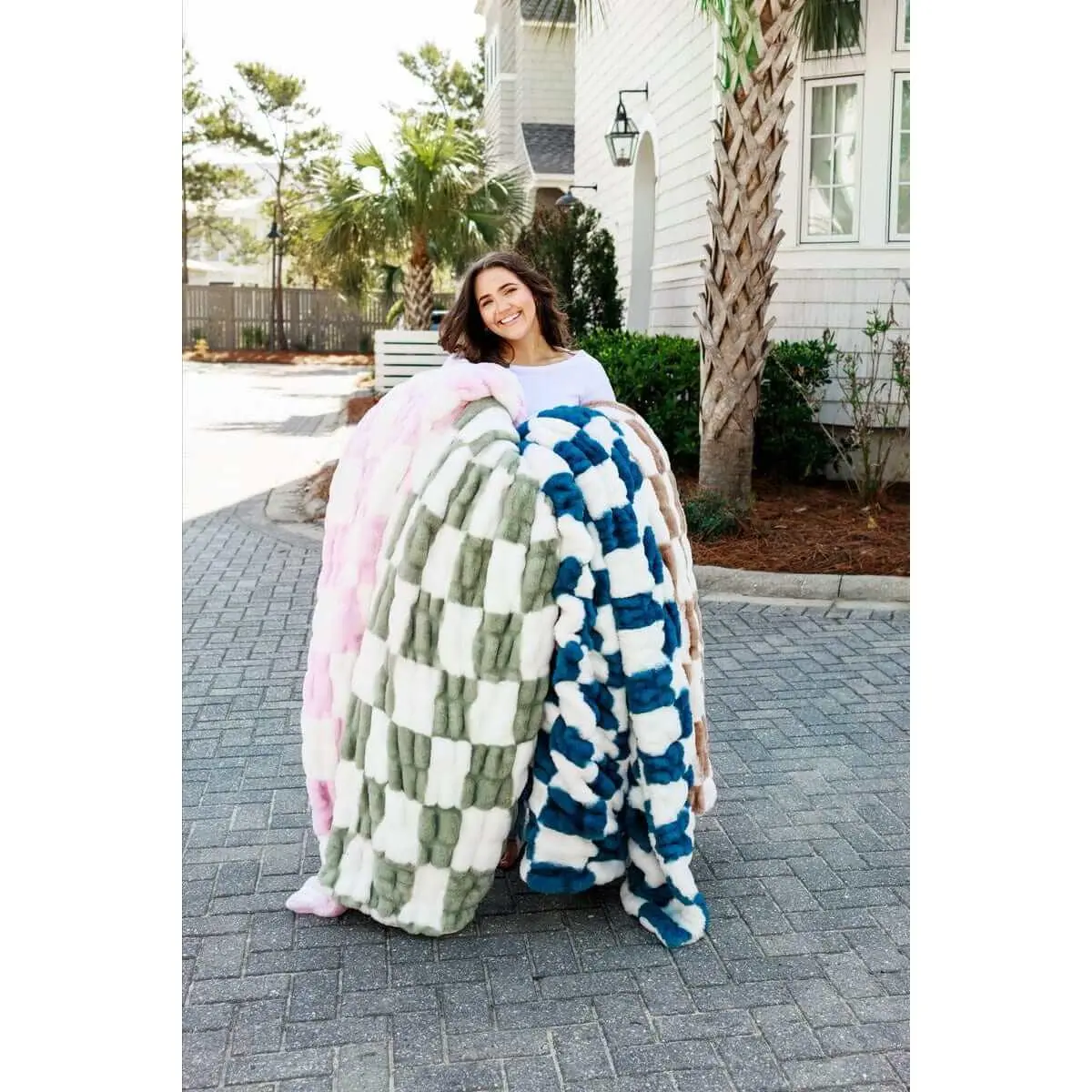 It is so super soft and the pink check is amazing! I love it and can’t wait to get another one!!