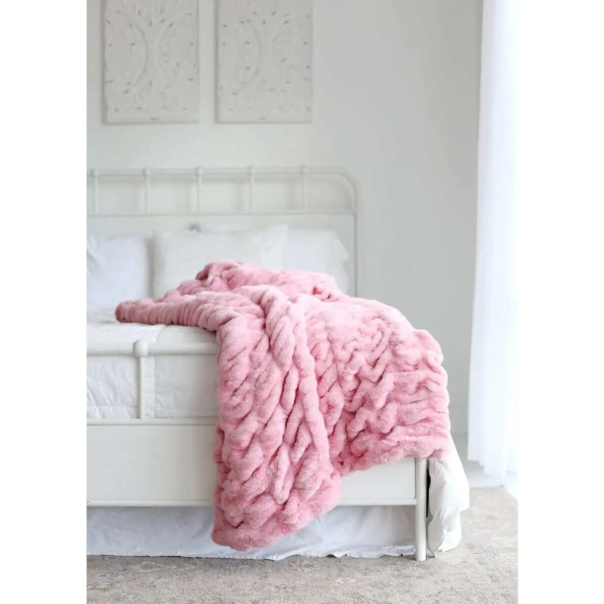 I am obsessed with this color! It reminds me of the hubba bubba gum color. It is such a pretty pink, my favorite shade of pink. And the quality is definitely worth the steep price point. Definitely the softest blankets I own. Will be purchasing one for every single room.