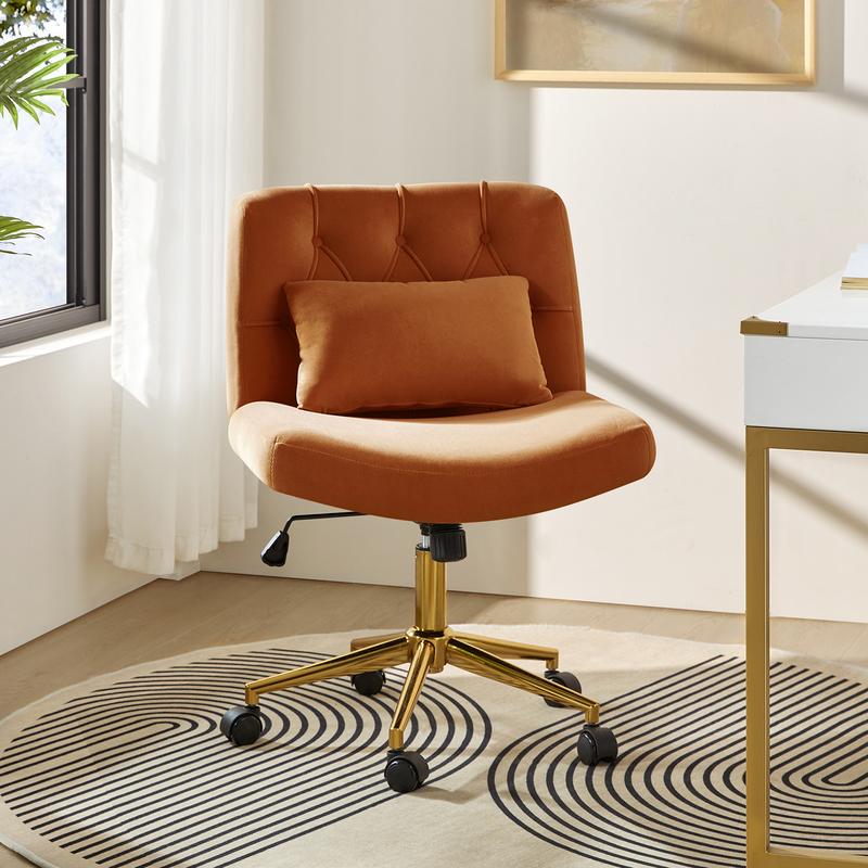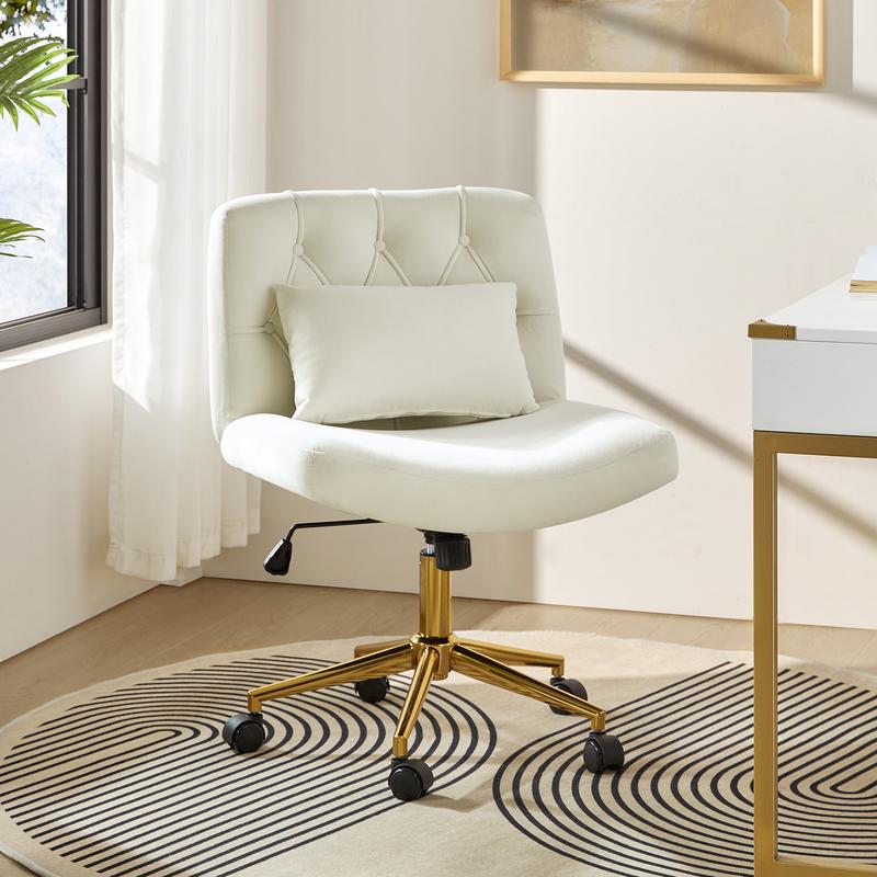 Wrapped in soft flannel upholstery, this chair exudes comfort and style. Its sturdy metal feet, equipped with smooth casters, ensure easy mobility around your workspace. Designed with your comfort in mind, it features a supportive pillow for your lower back, promoting proper posture during hours of work. The swivel seat allows for effortless movement, enhancing your productivity.