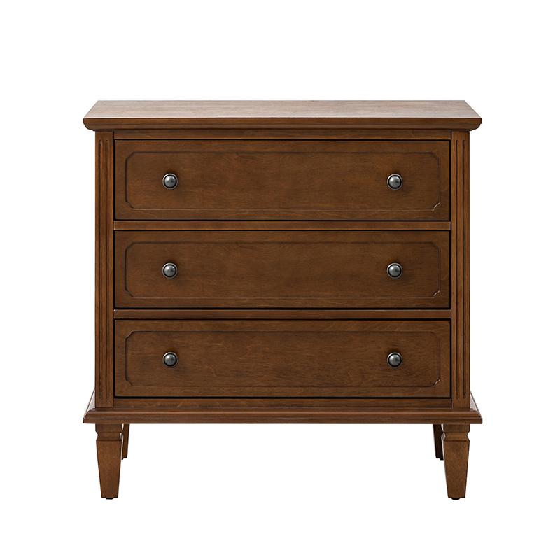 Elevate your home decor with the HULALA HOME Transitional Wood End Table. This piece features elegant knife-carved detailing and a timeless design. It includes three spacious drawers for ample storage. The nightstand is crafted from sturdy solid wood, ensuring durability and stability. Perfect for any room, it offers an integrated power outlet for convenience.