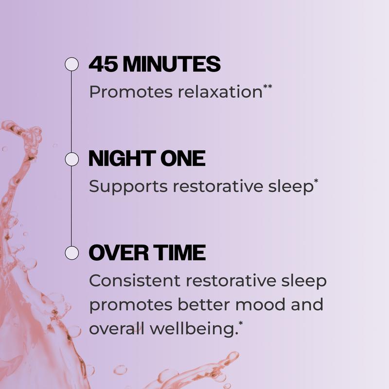 Healthcare dietary supplement designed for relaxation and restorative sleep.