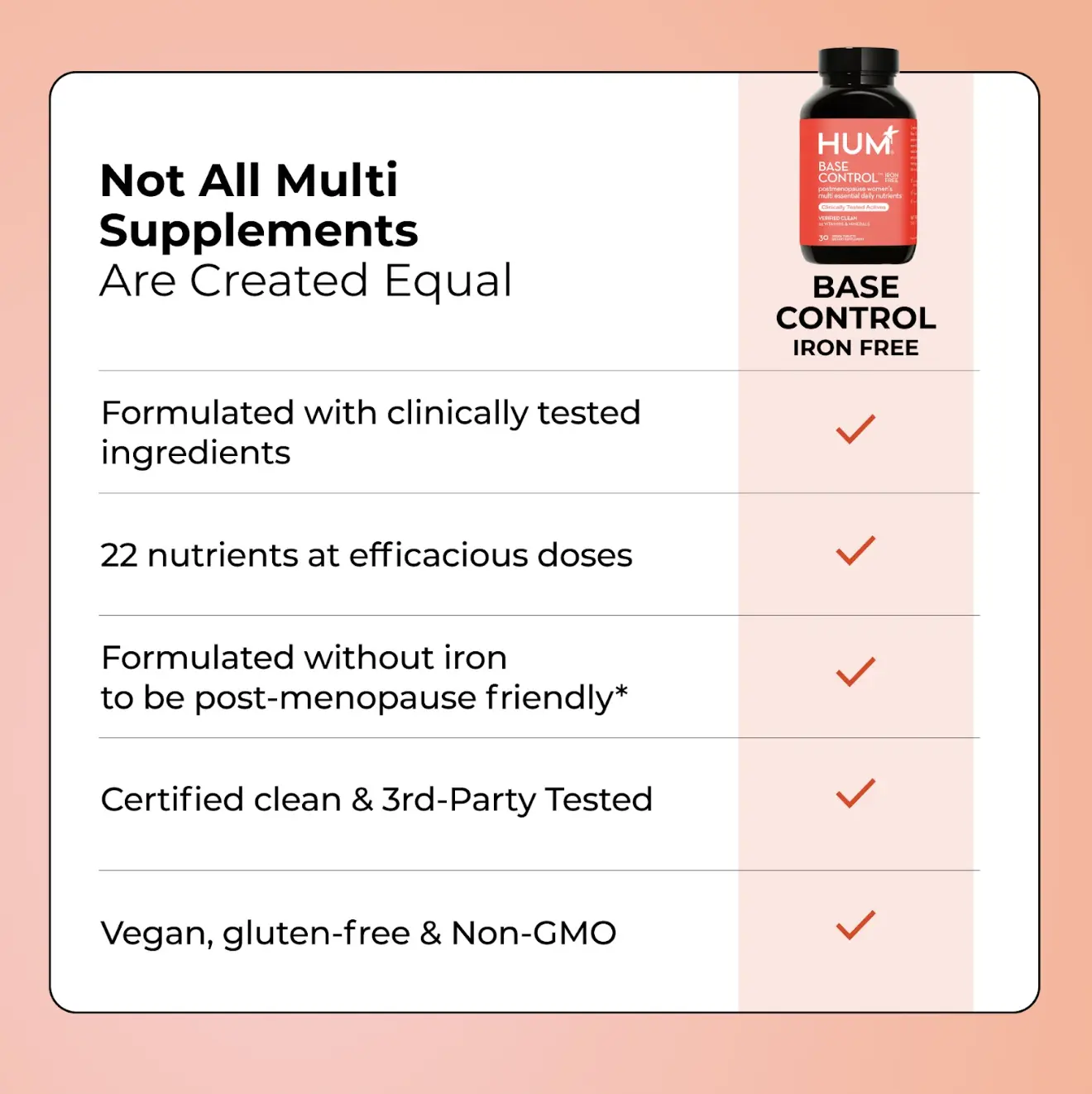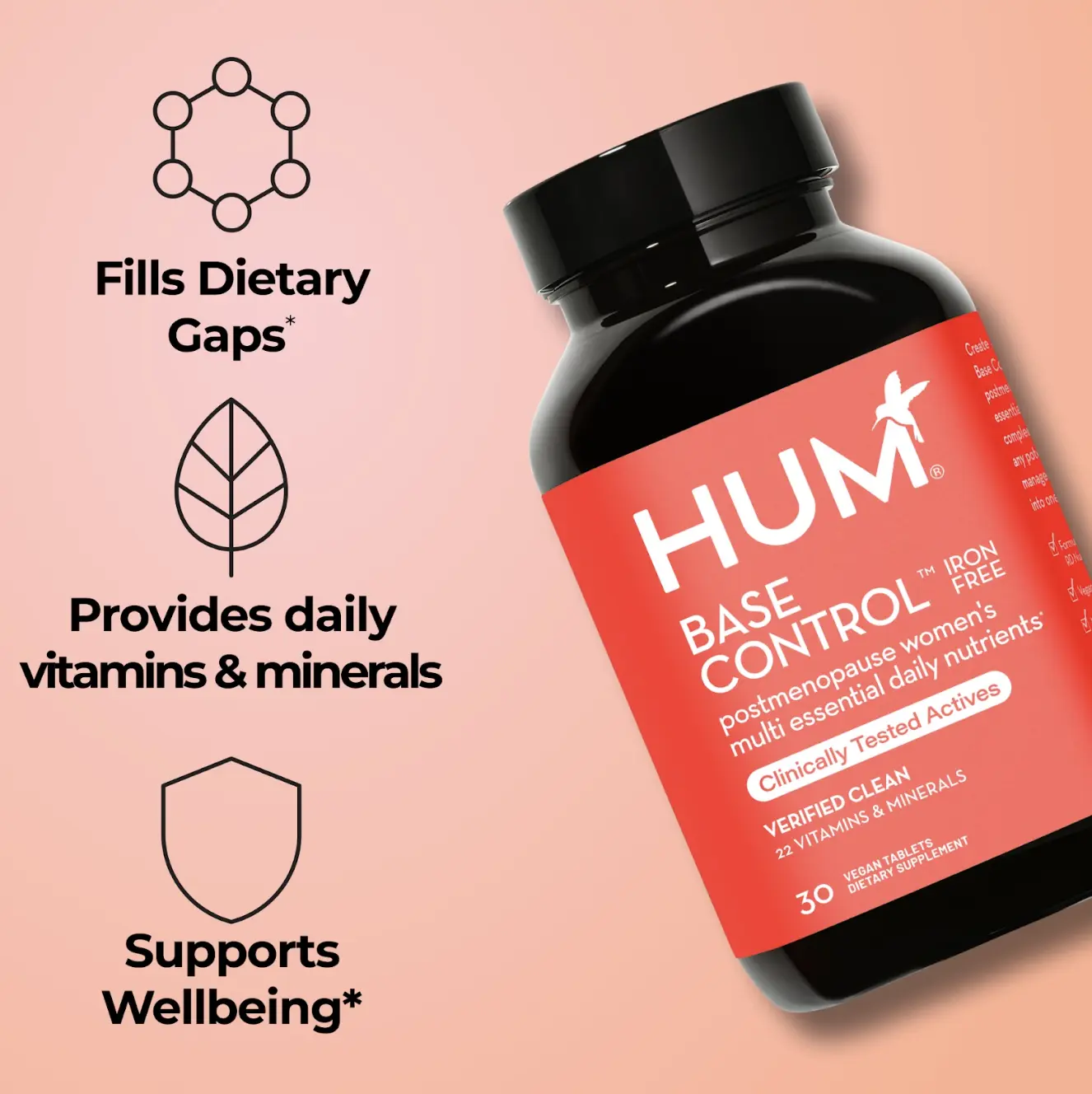 HUM Base Control Iron Free Daily Multivitamin - Clinically Tested Key Nutrients, 22 Vitamins & Minerals, Vegan Tablets, 30 Count