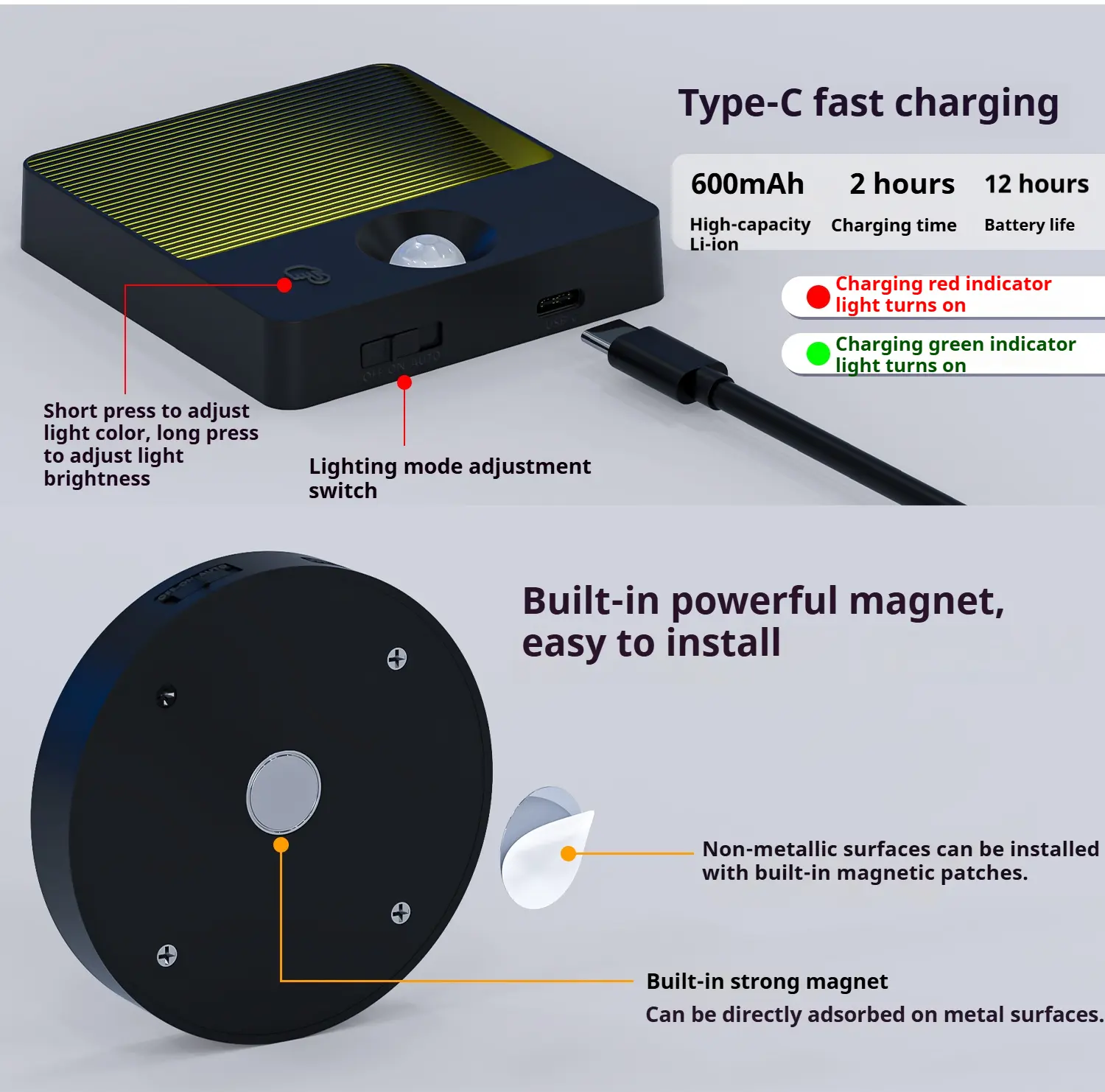 ·Automatic Night Light: The lamp features an automatic night light function, ensuring it turns on when motion is detected. Ideal for safety and convenience at night. 🌙