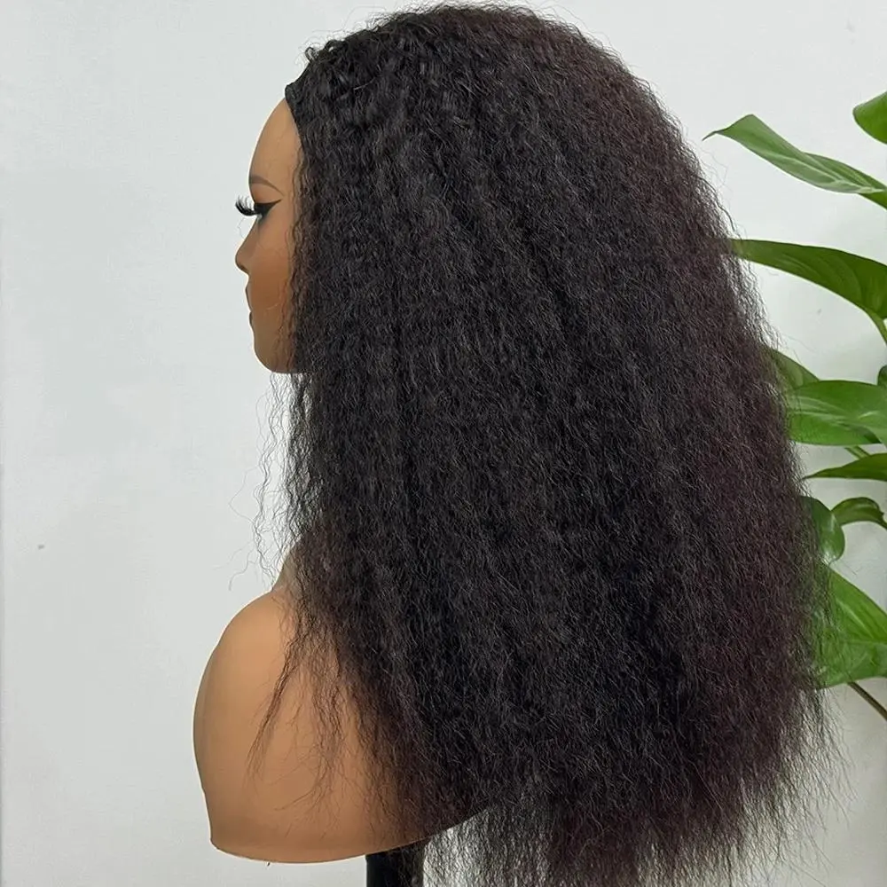 [Ready to Wear Half Wig] Human Natural Hair Kinky Straight Invisible Hairline Glueless Install 3 IN 1 Seamless Flip Over Half Up and Down Wig Beginner Friendly Wigs for Women With Drawstring