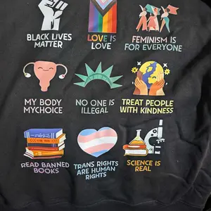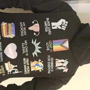 Love this hoodie. I got an xl to fit oversized..it's super warm and comfy while making a statement.