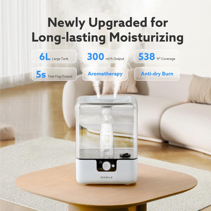 Chivalz 6L Humidifiers &WIFI with 360° Nozzle, Anti-dry Burn and Aromatherapy Function, Up to 50 H0ours for Nursery and Large Rooms biggest airpurifier diffuser for fragrance machine, TikTokShopBlackFriday