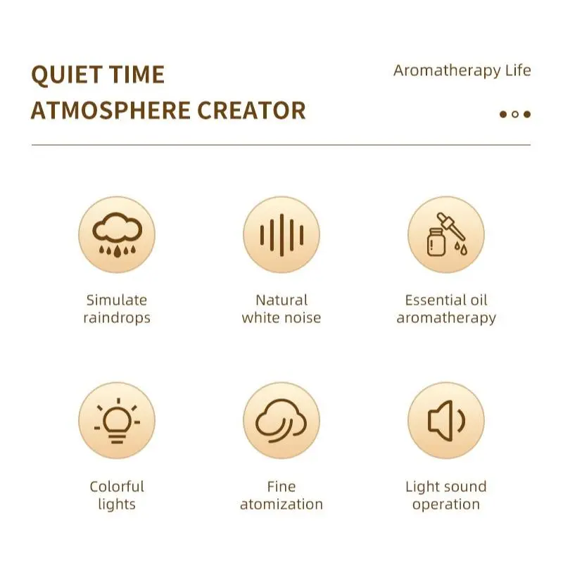 Raindrop Design Humidifier Diffuser, Novel Night Light with 8 Color Changes, Mist Humidifier with Plant Landscape Effect & White Noise