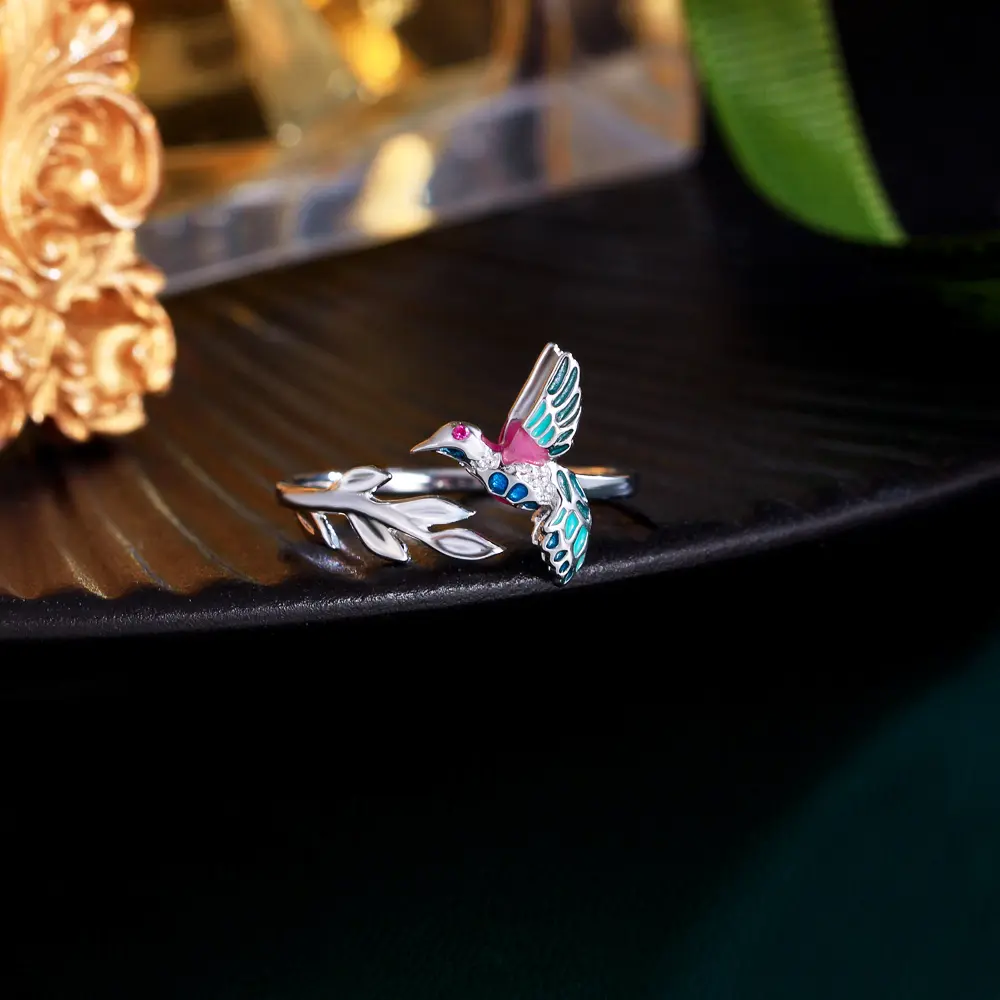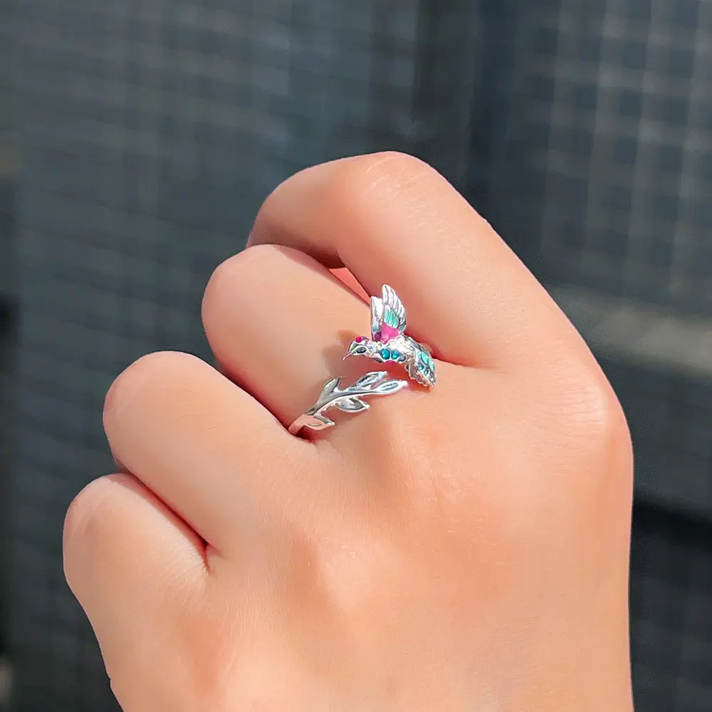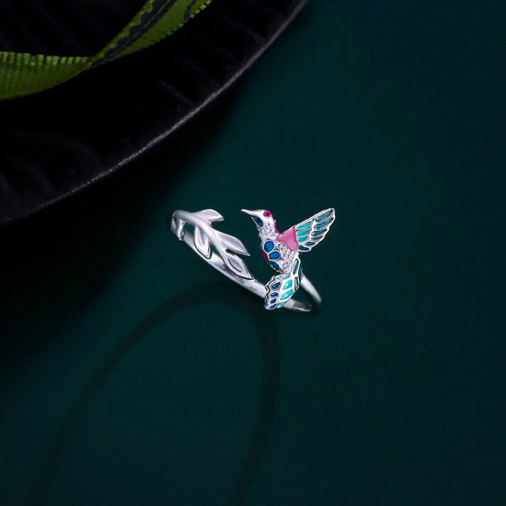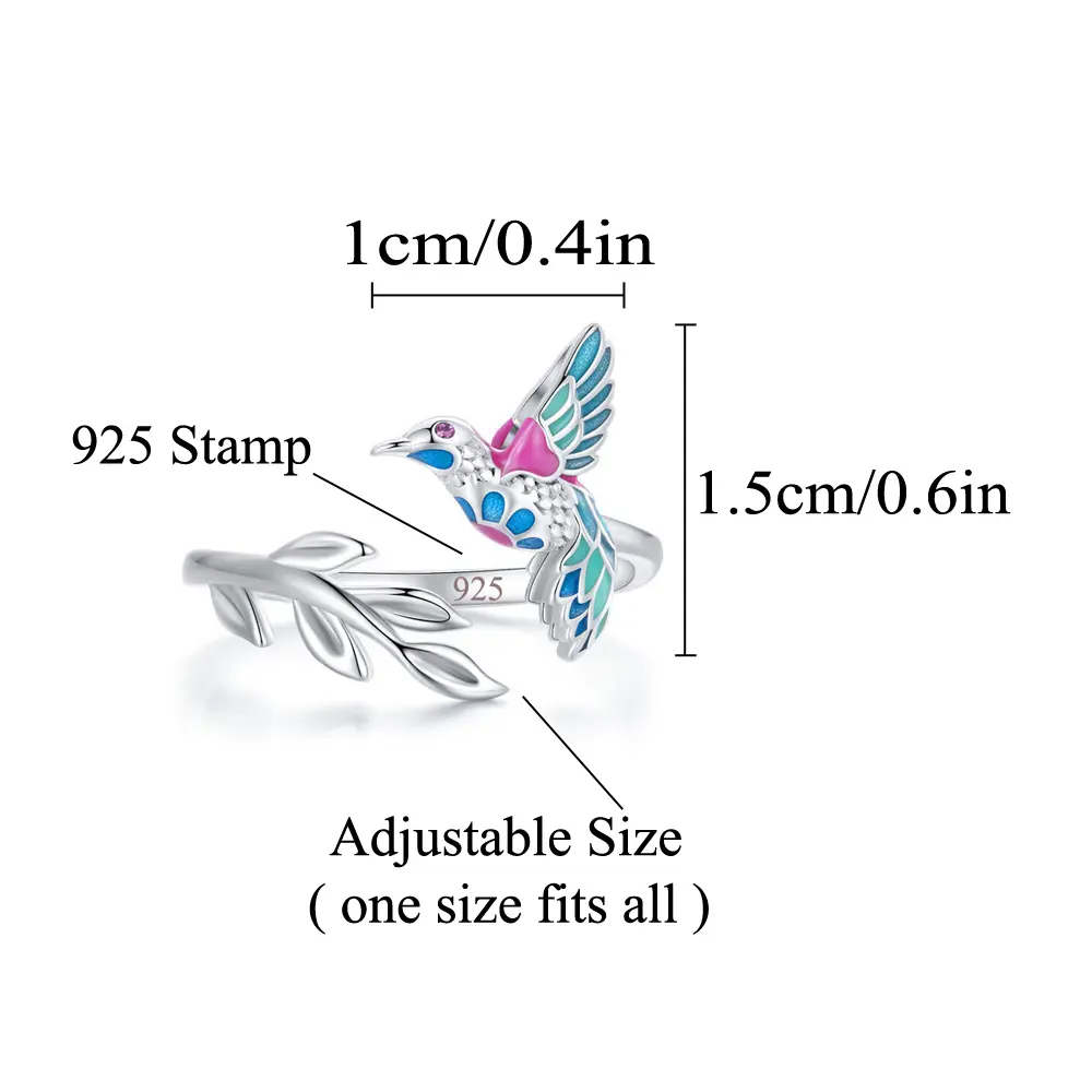 🐦 Charming Hummingbird Design: This ring features a delightful hummingbird design with colorful details. The hummingbird measures 1cm in width and 1.5cm in height. The vivid colors and delicate craftsmanship make the hummingbird look lifelike, adding a whimsical touch to your look. Perfect for those who love unique and colorful jewelry.