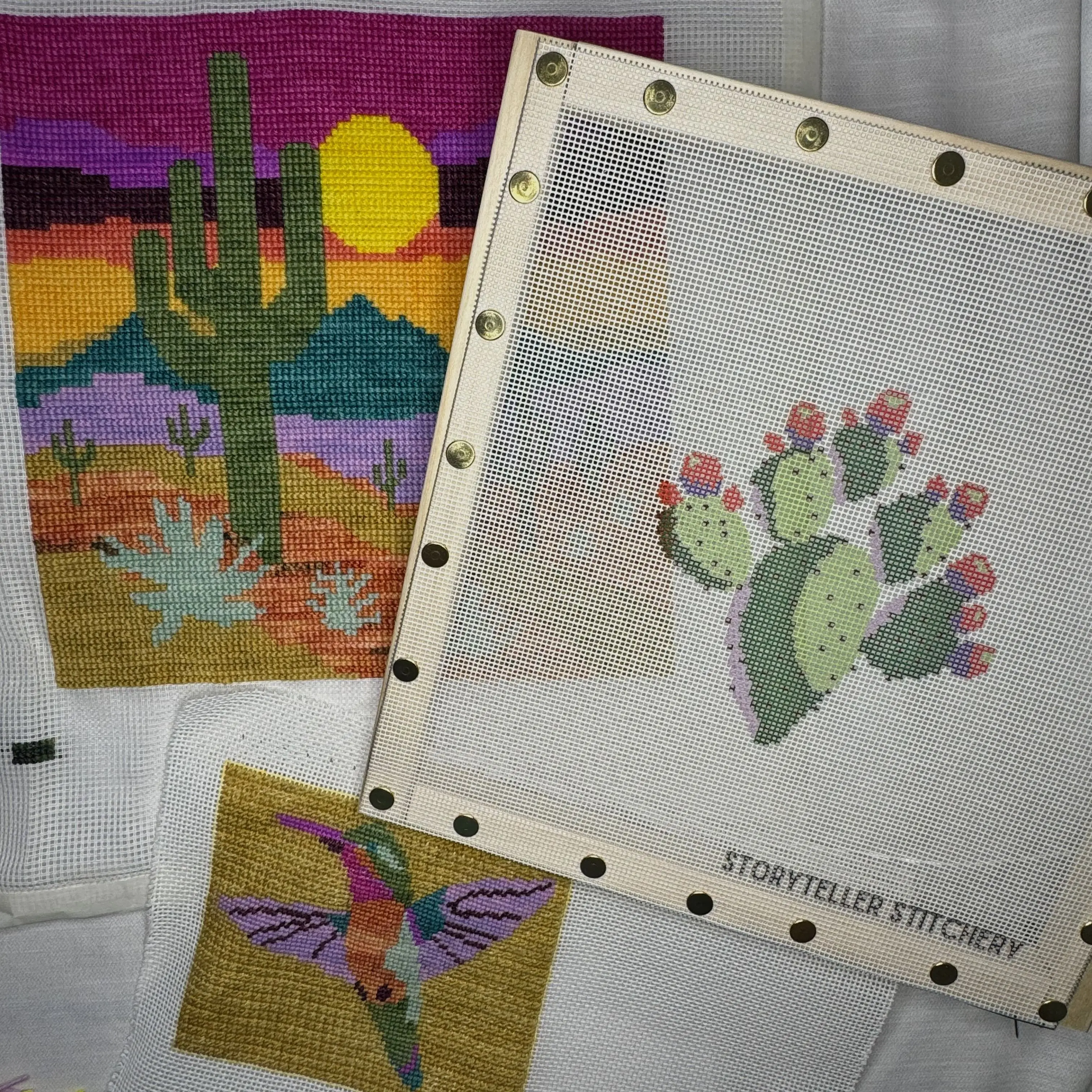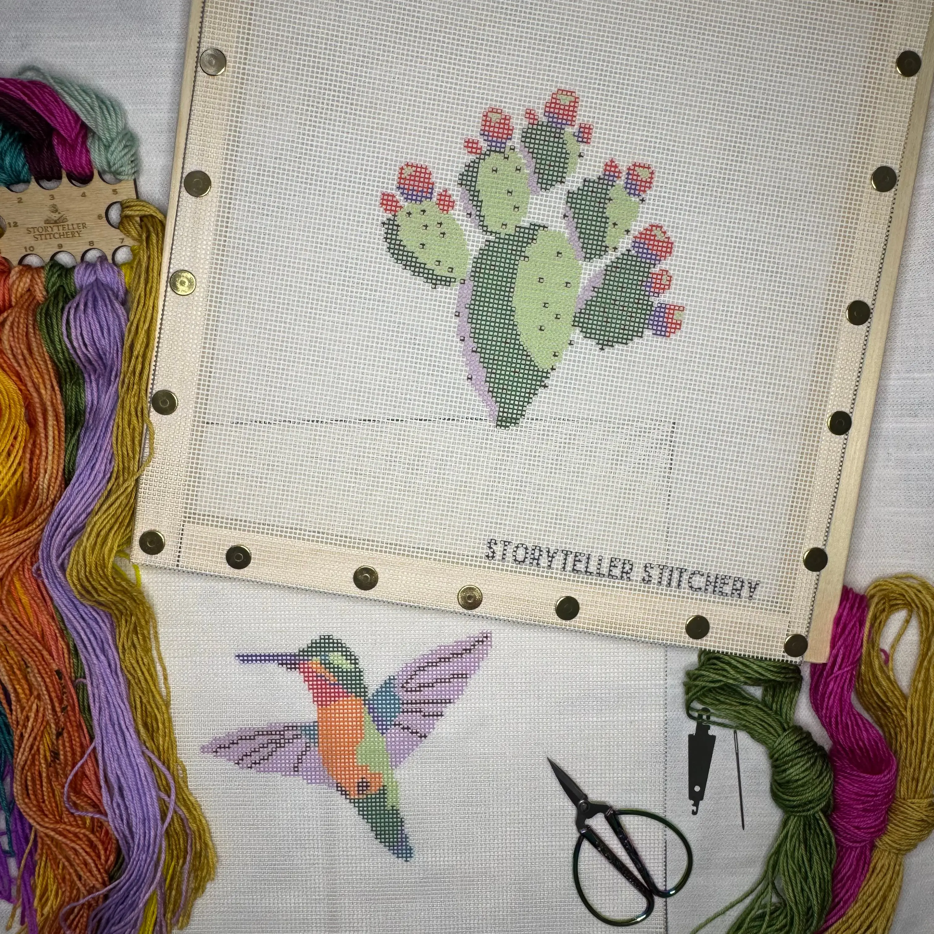 Hummingbird Printed Needlepoint CANVAS | Small Southwest Design (Canvas Only)
