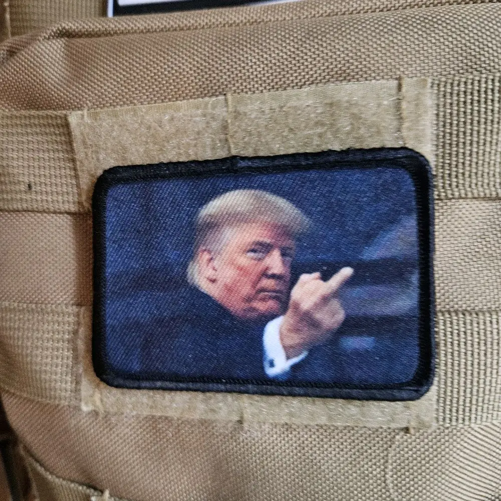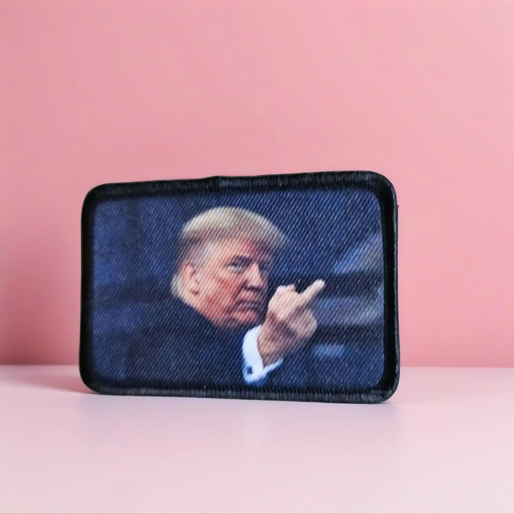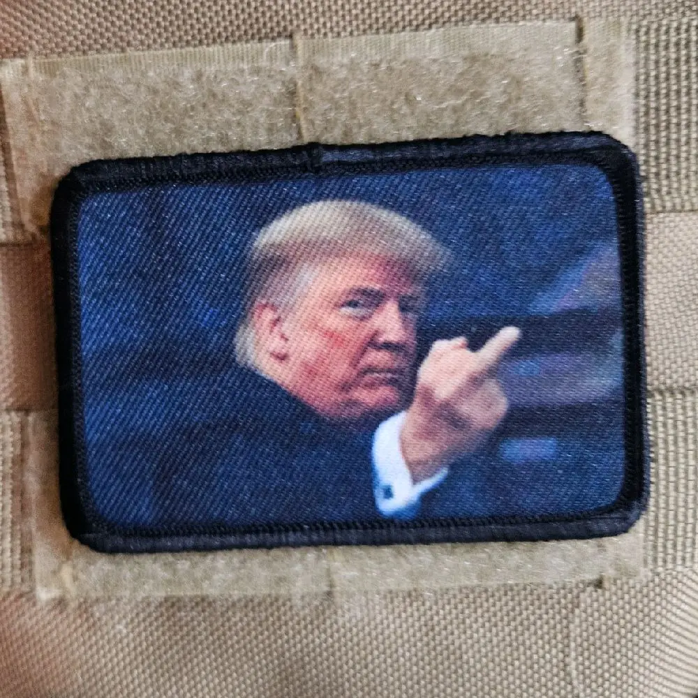 ·Color: The patch features a vibrant Trump flipping the bird meme design.