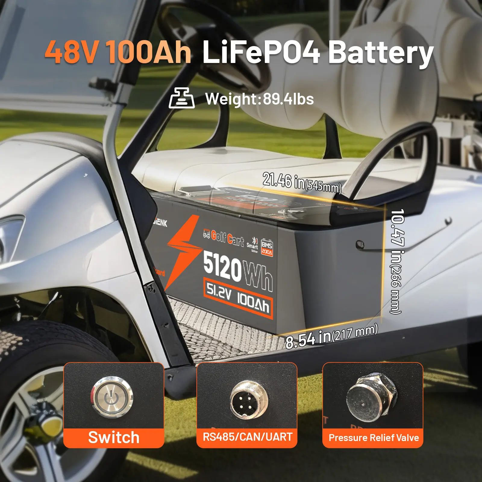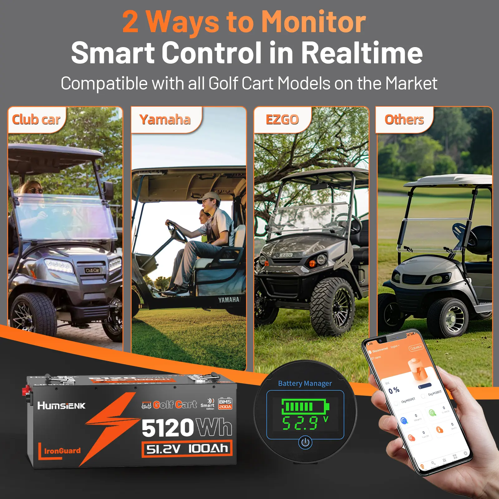HumsiENK 48V 100Ah LiFePO4 Battery for Golf Cart, Built-in 200A BMS, Bluetooth Monitoring, 50+ Mile Range,Low-Temp and 15000+ Deep Cycles For RV, Solar Marine, Off-grid #tvgadgets #vehicleaccessory #bikerhelmets #electricgear #golfbagaccessories #compactyetpowerful #escooteraccessories #kidsgolfcart #bestsmartwatch2025 #smartgolftrolley