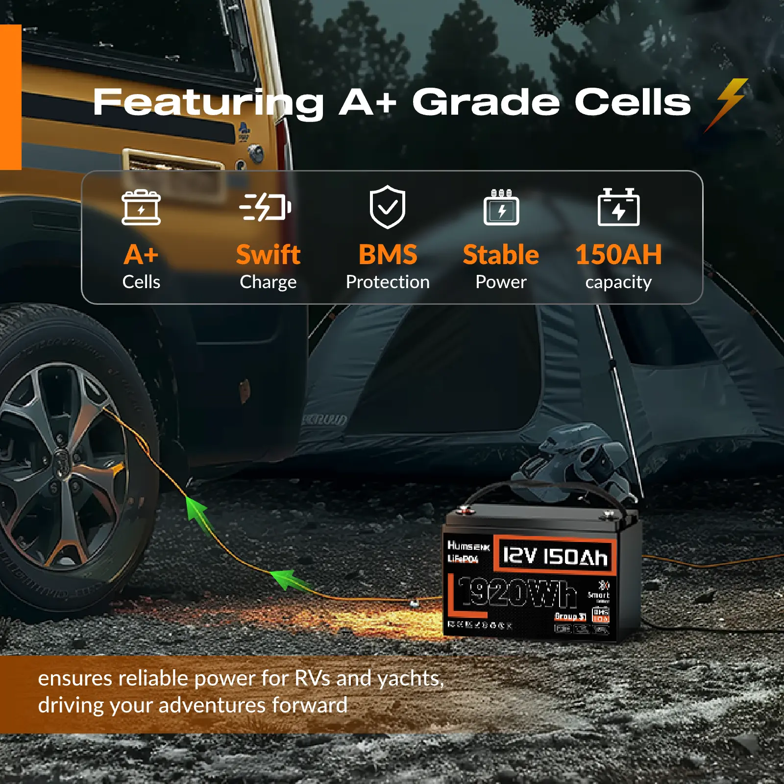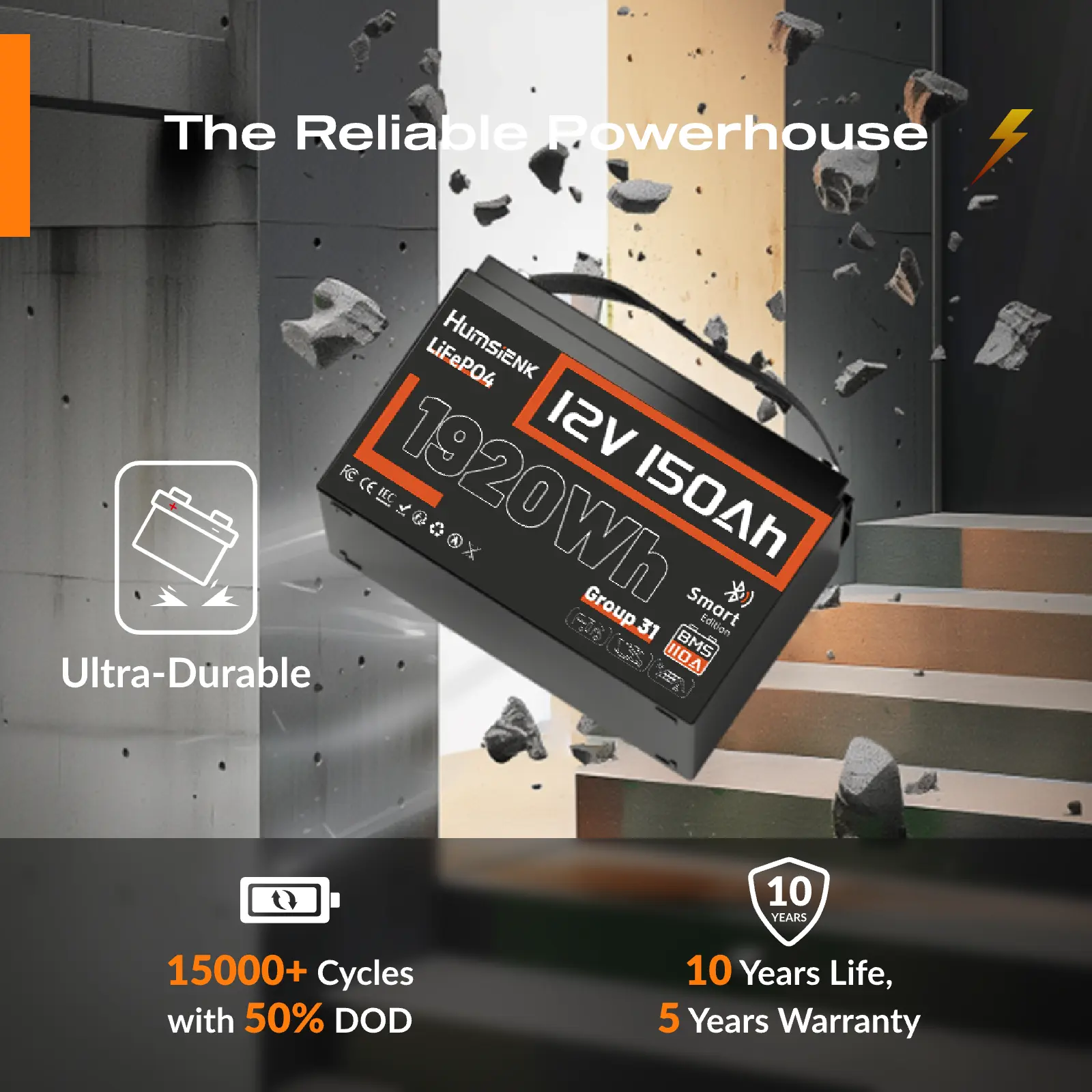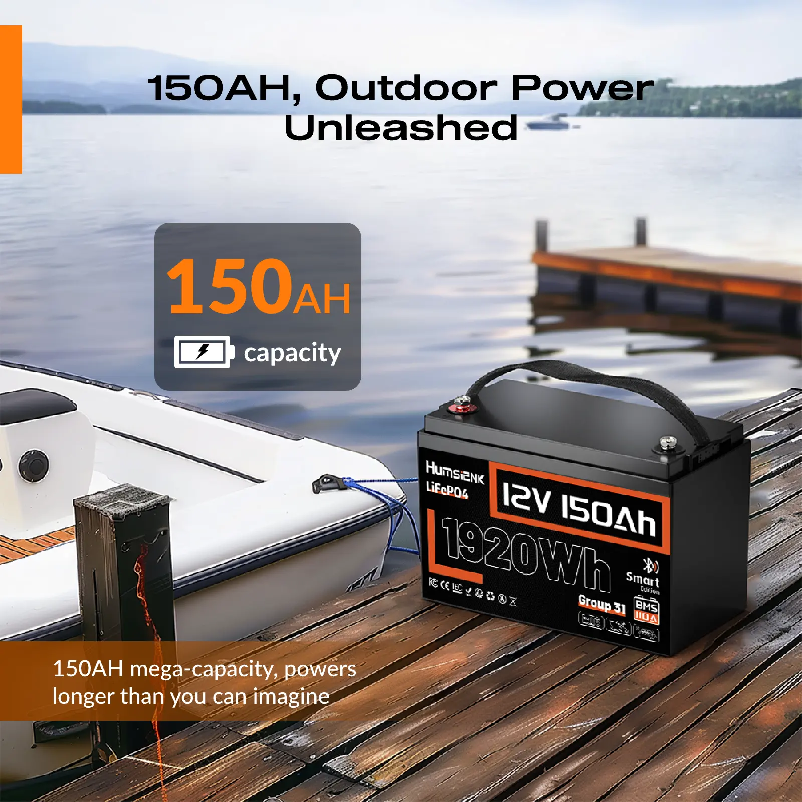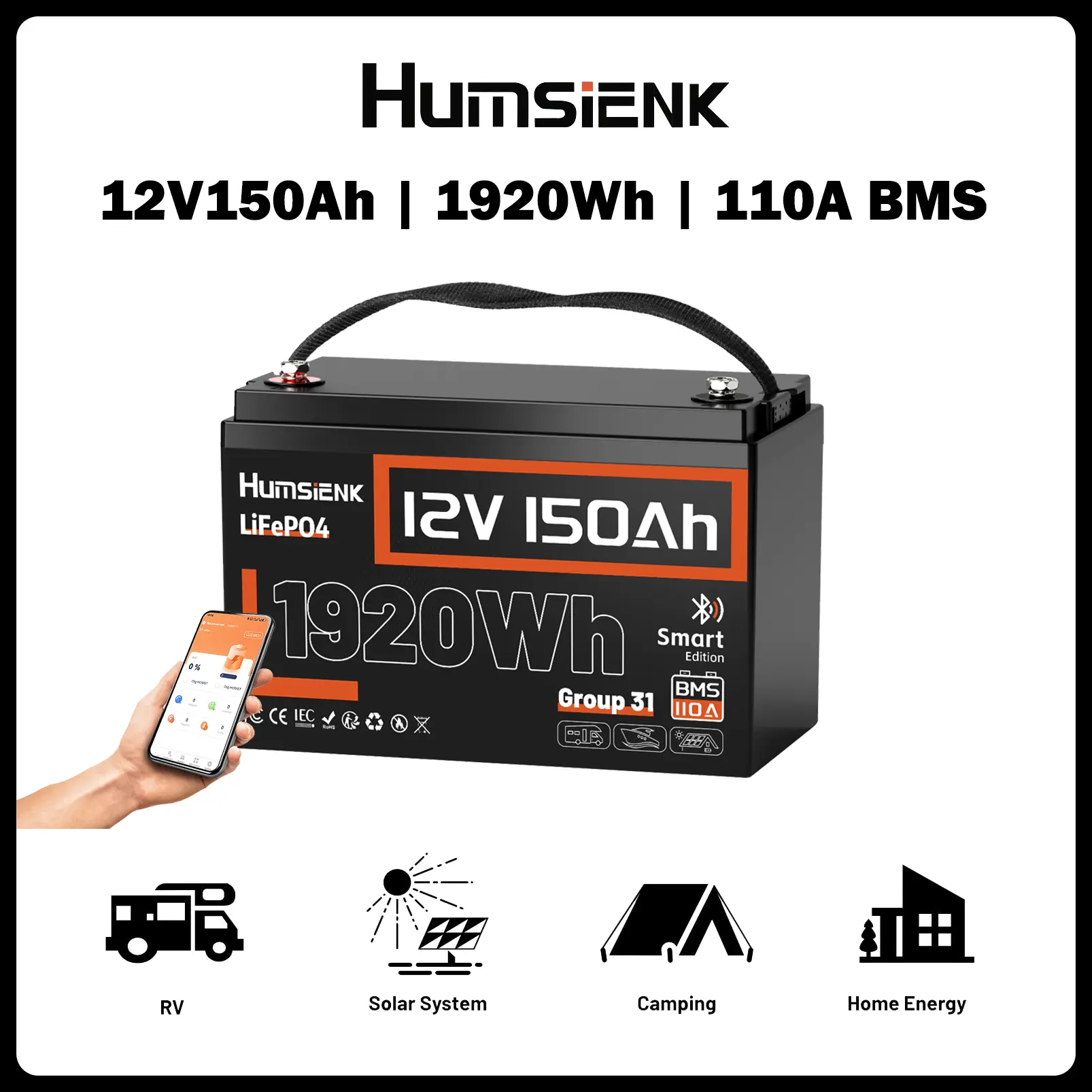 HumsiENK 12V 150Ah LiFePO4 Battery, Group 31, 15000+ Deep Cycles, Lithium Iron Phosphate Battery, Built-in 110A BMS, Portable Power Station for Home Backup Power, RV, Marine, Trolling MotorsHumsiENK 12V 150Ah LiFePO4 Battery, Group 31, 15000+ Deep Cycles, Lithium Iron Phosphate Battery, Built-in 110A BMS, Portable Power Station for Home Backup Power, RV, Marine, Trolling MotorsHumsiENK 12V 150Ah LiFePO4 Battery, Group 31, 15000+ Deep Cycles, Lithium Iron Phosphate Battery, Built-in 110A BMS, Portable Power Station for Home Backup Power, RV, Marine, Trolling MotorsHumsiENK 12V 150Ah LiFePO4 Battery, Group 31, 15000+ Deep Cycles, Lithium Iron Phosphate Battery, Built-in 110A BMS, Portable Power Station for Home Backup Power, RV, Marine, Trolling MotorsHumsiENK 12V 150Ah LiFePO4 Battery, Group 31, 15000+ Deep Cycles, Lithium Iron Phosphate Battery, Built-in 110A BMS, Portable Power Station for Home Backup Power, RV, Marine, Trolling MotorsHumsiENK 12V 150Ah LiFePO4 Battery, Group 31, 15000+ Deep Cycles, Lithium Iron Phosphate Battery, Built-in 110A BMS, Portable Power Station for Home Backup Power, RV, Marine, Trolling MotorsHumsiENK 12V 150Ah LiFePO4 Battery, Group 31, 15000+ Deep Cycles, Lithium Iron Phosphate Battery, Built-in 110A BMS, Portable Power Station for Home Backup Power, RV, Marine, Trolling Motors