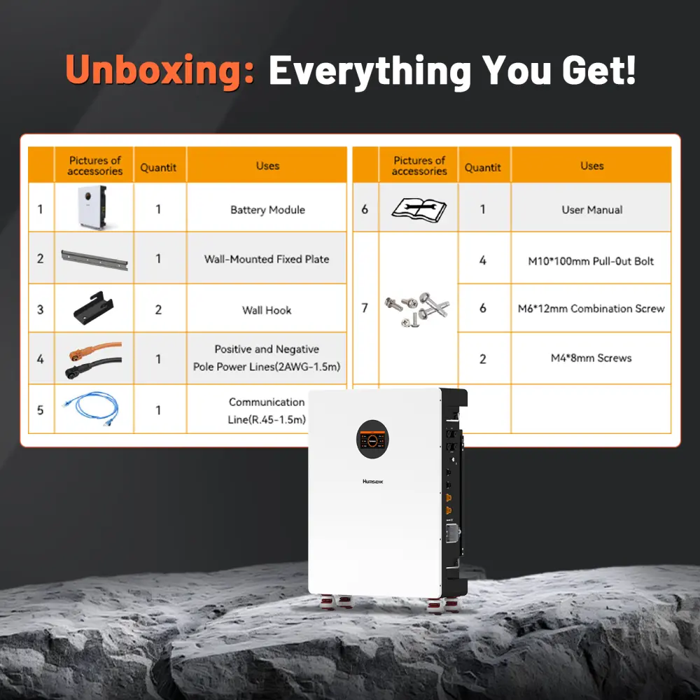5. 【Truck Delivery】HumsiENK 48V 314Ah LiFePO4 Lithium Battery - Offgrid power & Solar System Compatible, Bluetooth, Active Balancing, Wall-Mounted, 16kWh, 200A BMS, LCD Monitor, Grade A Cells, 15000+ Cycles, 10-Year Lifespan for Home Energy Storage