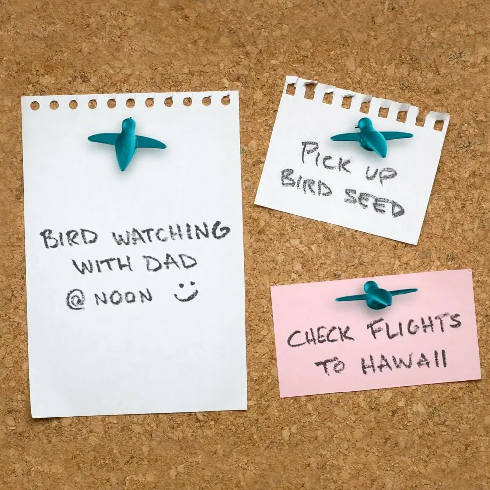 There's nothing cuter than tiny hummingbirds buzzing around flowers and drinking nectar. Bring that magic to your pinboard with HUMTACKS. 20 metallic-finish hummingbird pushpins are equipped with a sharp beak that will hold your stray notes and photos in place. They're buzzy, bright accents for your pinboard!