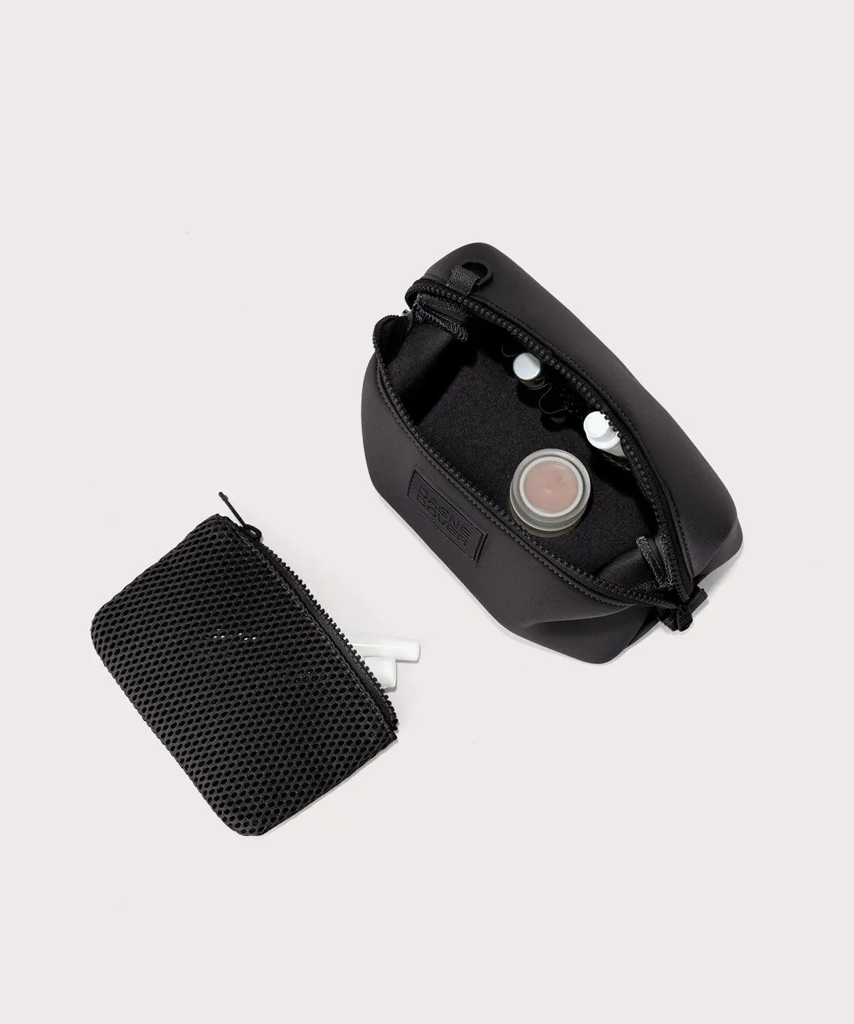 Keep your grooming essentials organized with our Hunter Toiletry Bag. A removable zippered compartment and side slip pocket perfectly hold items like a small comb, contact lens case or tissue packet, while elastic loops cradle items like lip balm, razors or travel fragrance. Throw this small case inside any of our 365 bags for life on the go. We use 100% premium neoprene, a high-tech fabric that is hand washable and quick to dry. Its insulating and shock-absorbent thanks to the material makeup. A modern material for modern needs, the durability and versatility are endless.Air Mesh is a hand-washable, tear-resistant textile that lends breathability and versatility to our bags and pouches. Its tactile nature makes it a perfect complement to smooth neoprene, but also allows for a nearly weightless and cushioned carry.