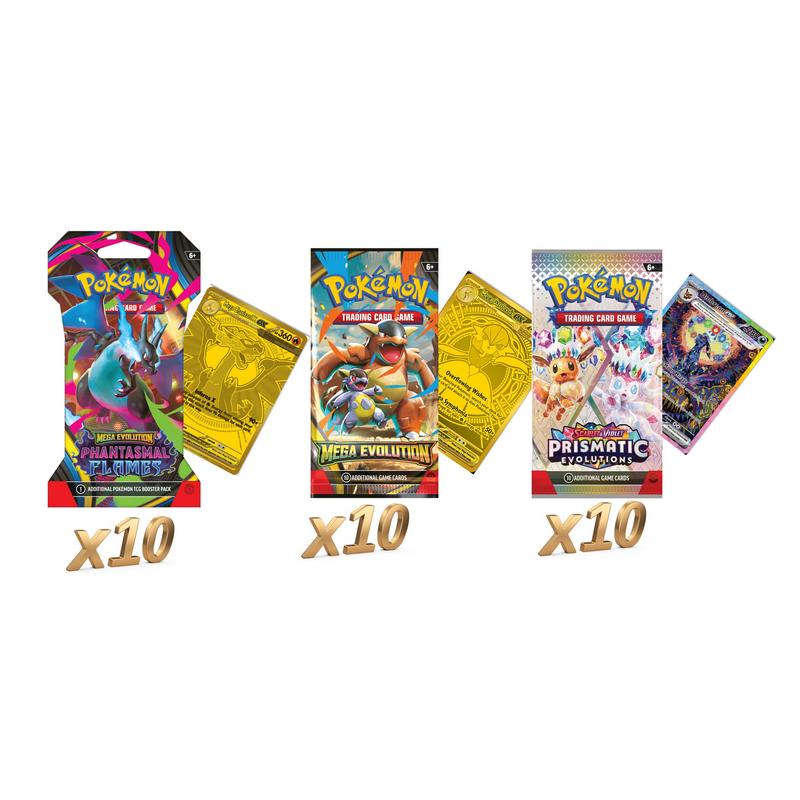 x2 EXTRA packs of Mega Evolutions, Phantasmal Flames and Prismatic Evolutions