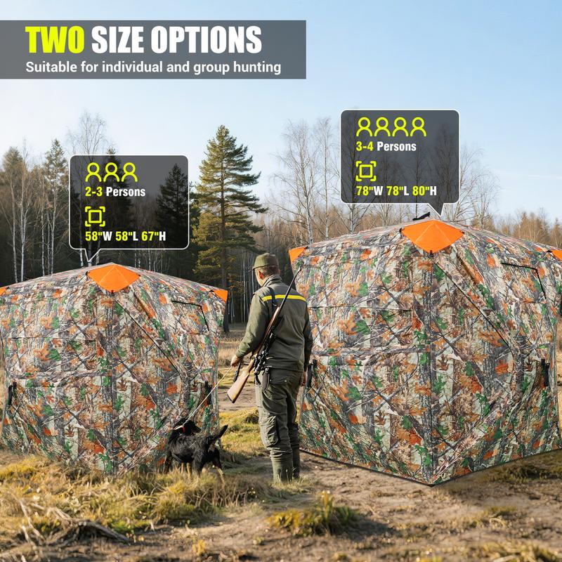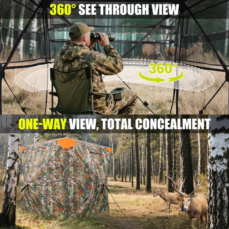 ·270 or 360-Degree Visibility: Experience a complete view with our hunting blind's four one-way panels, offering 270-degre or 360-degree sightlines.