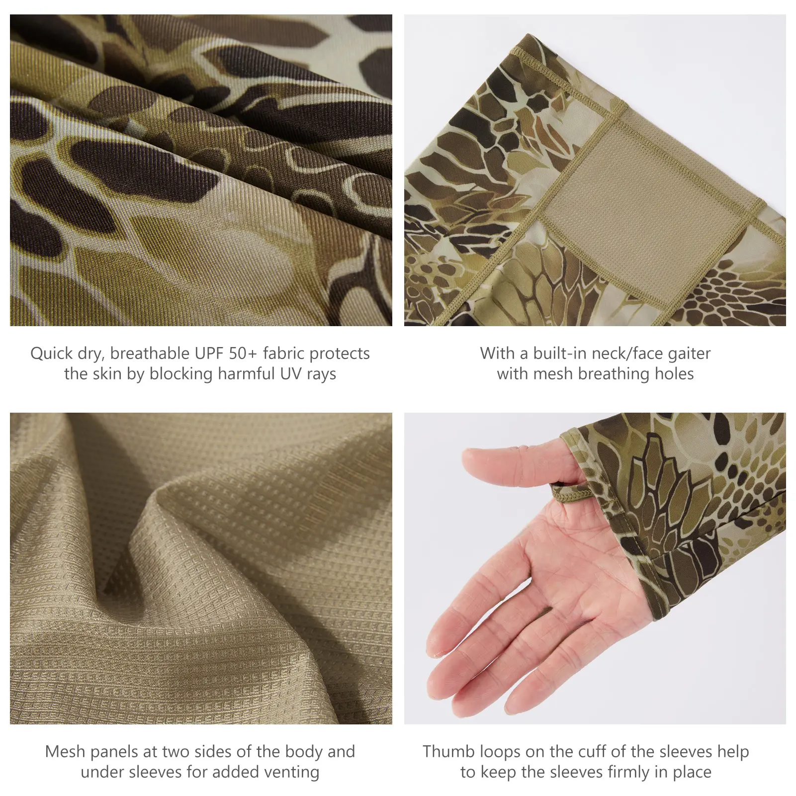 With a built-in hood and neck gaiter - the neck gaiter can be worn as a mask and it is soft and breathable, enhanced with mesh breathing holes to help keep your sunglasses clear without fogging up; Fully protects your face and neck from the harsh sun rays, wind, dust and bugs all day long and also helps keep your head, face and neck warm while in cold days