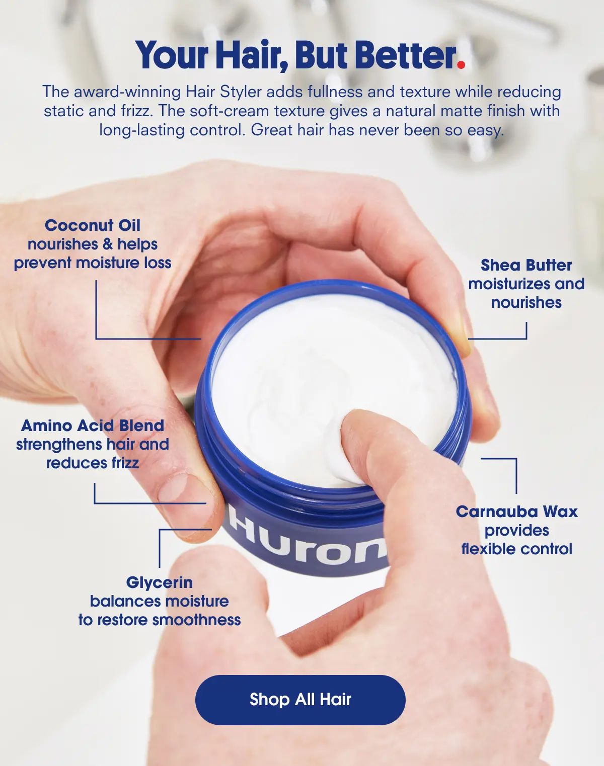 Style your hair with control that looks natural. HURON Hair Styler is a soft-cream grooming formula designed to add light hold, texture, and a natural matte finish without stiffness or shine. Easy to apply and suitable for everyday styling.