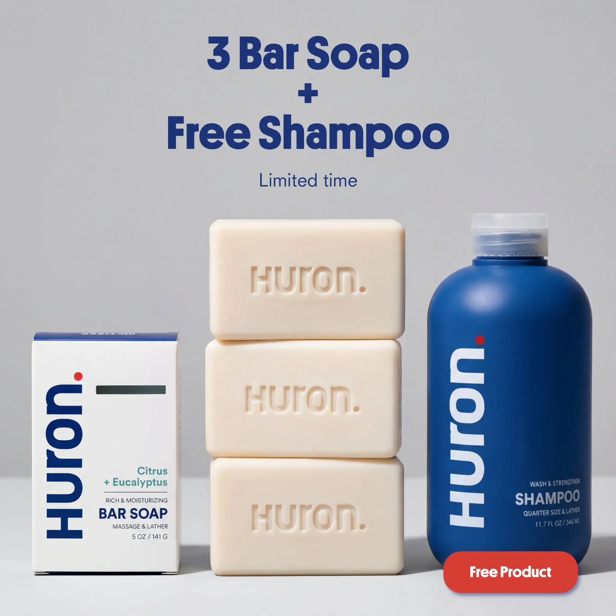 Upgrade your daily shower routine with the HURON Shower Set, a premium grooming combo designed to cleanse, hydrate, and refresh from head to toe. This set includes three long-lasting bar soaps and one free shampoo, delivering a clean, invigorating experience with a fresh citrus and eucalyptus scent.