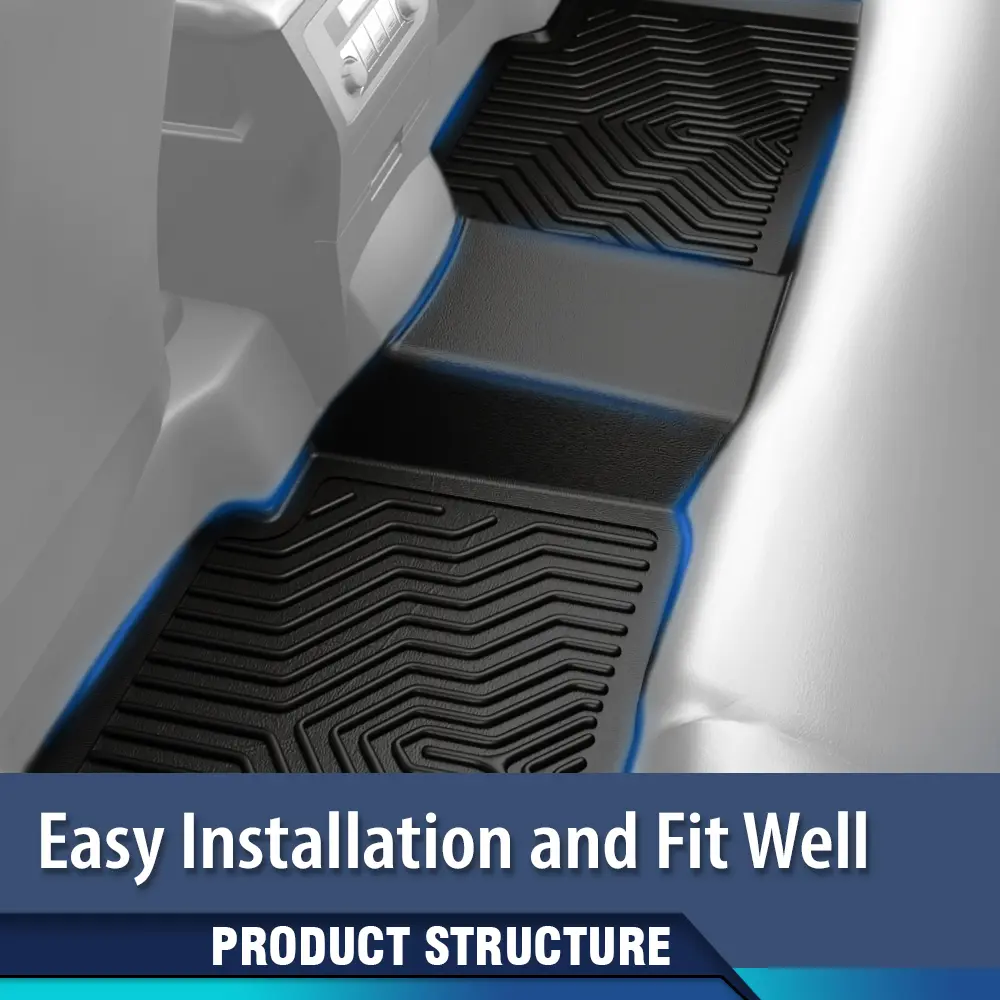 Our floor liners are made of upgraded TPE materials that do not produce unpleasant odors even in extremely hot weather. High-5strength TPE materials not only have excellent feel and wear resistance, but also remain elastic even in cold weather.