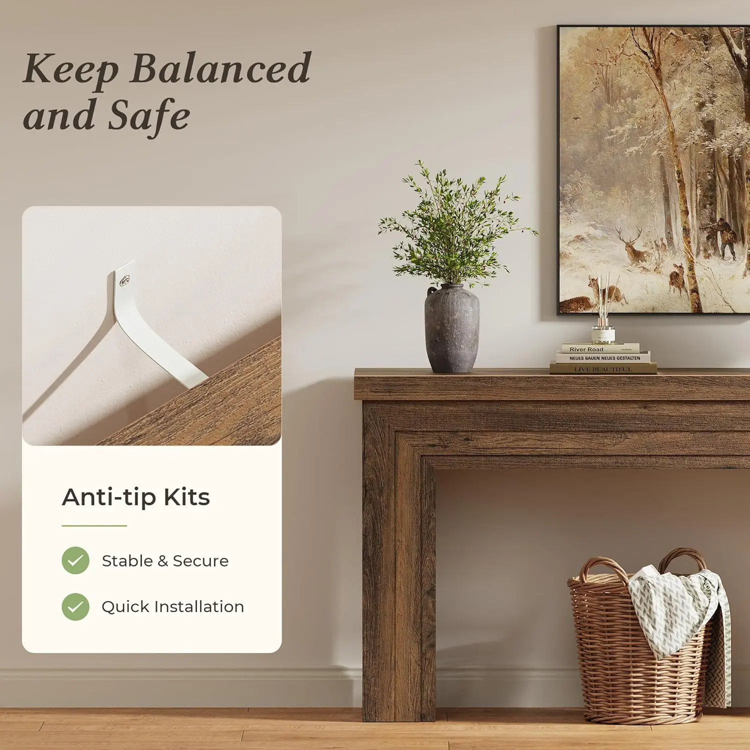 ·【Stable, Secure & Easy to Assemble】This thick design of the hallway table for entryway offers excellent stability, further reinforced by the included anti-tip kit for added safety. Clear instructions, labeled parts, and included hardware make assembly simple