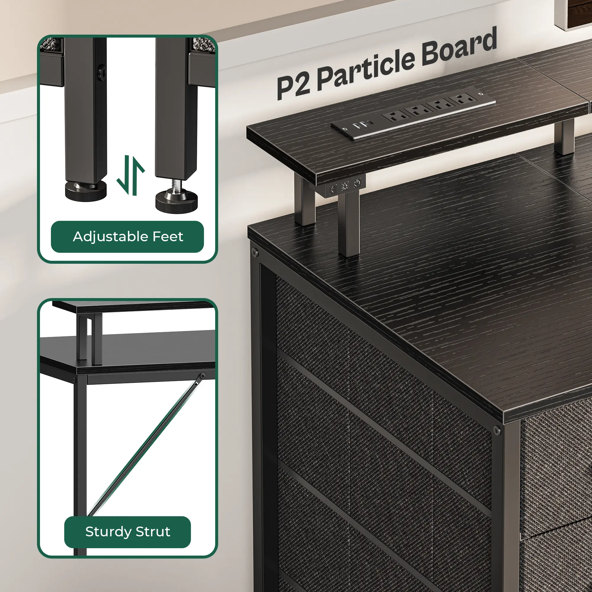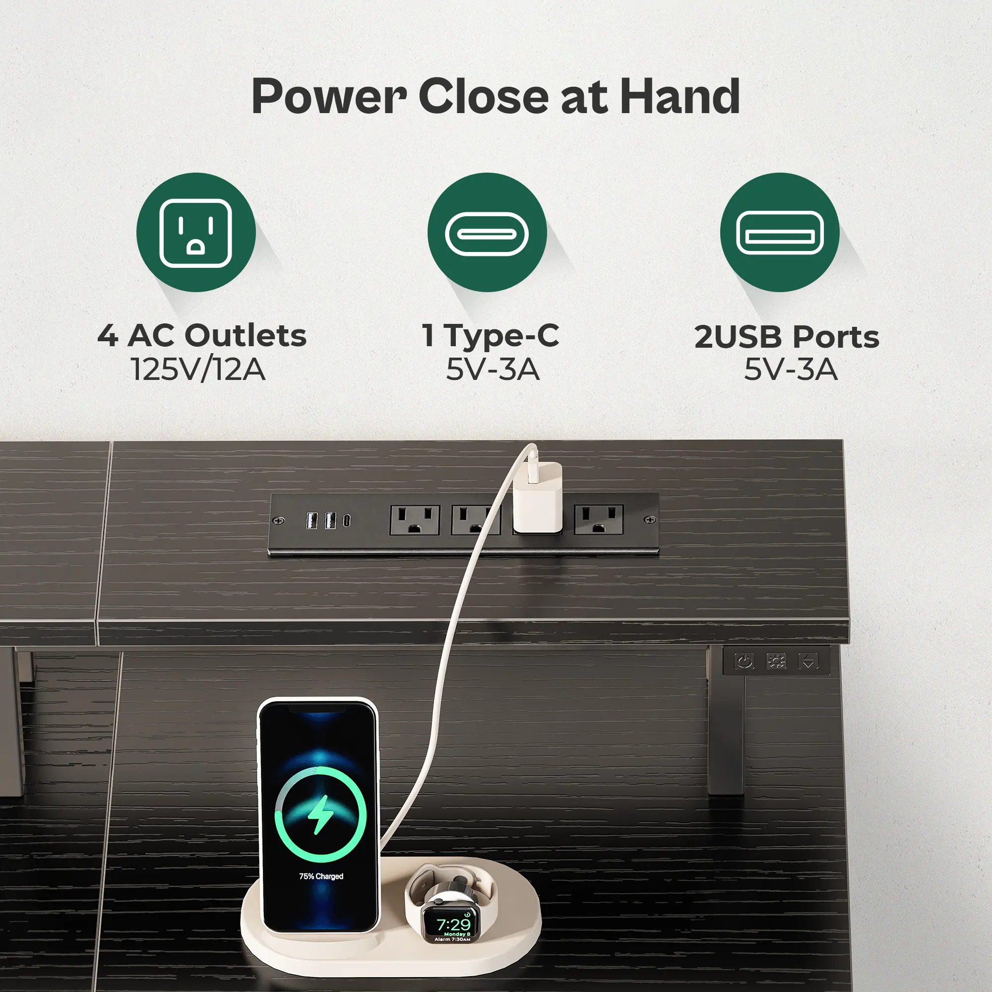 ·【POWER OUTLETS ON MONITOR STAND】4 AC outlets and 2 USB ports and 1 Type-c Port on the gaming computer desk allow you to charge your monitor, office or gaming devices with ease. And the monitor stands help to elevate your eye lines, avoiding neck and back pains. Super considerate writing desk
