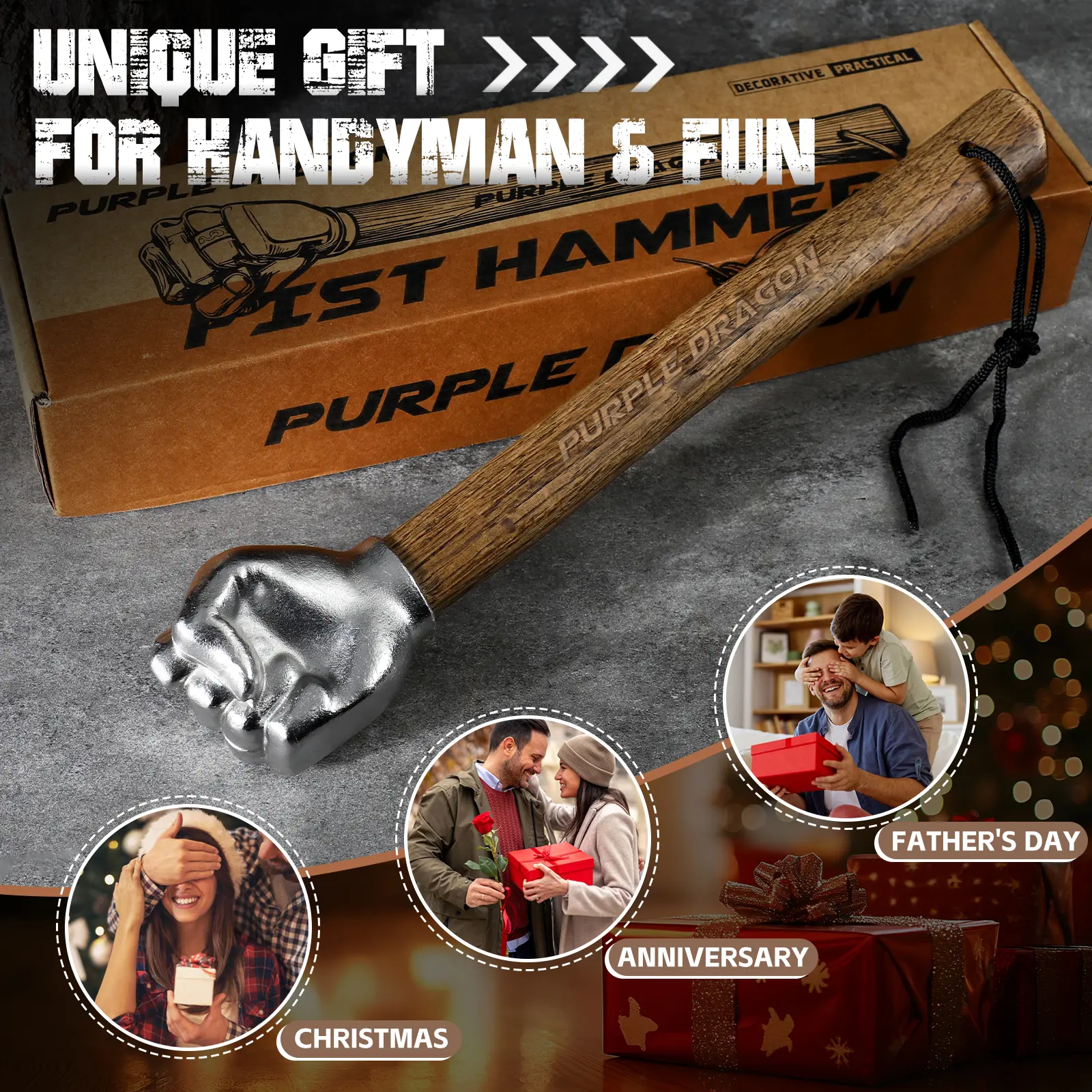 This stainless steel fist-shaped hammer with a wooden handle is a fantastic Christmas gift for your boyfriend. Ideal for home and outdoor camping, it's a versatile tool for construction, gardening, and household use. The hammer offers superior balance and efficient strikes, making it lightweight and portable.