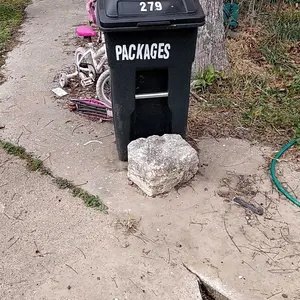 Left on my porch and had to pass the bin that said packages. My dog got it and tore the package and can't find the scissors.