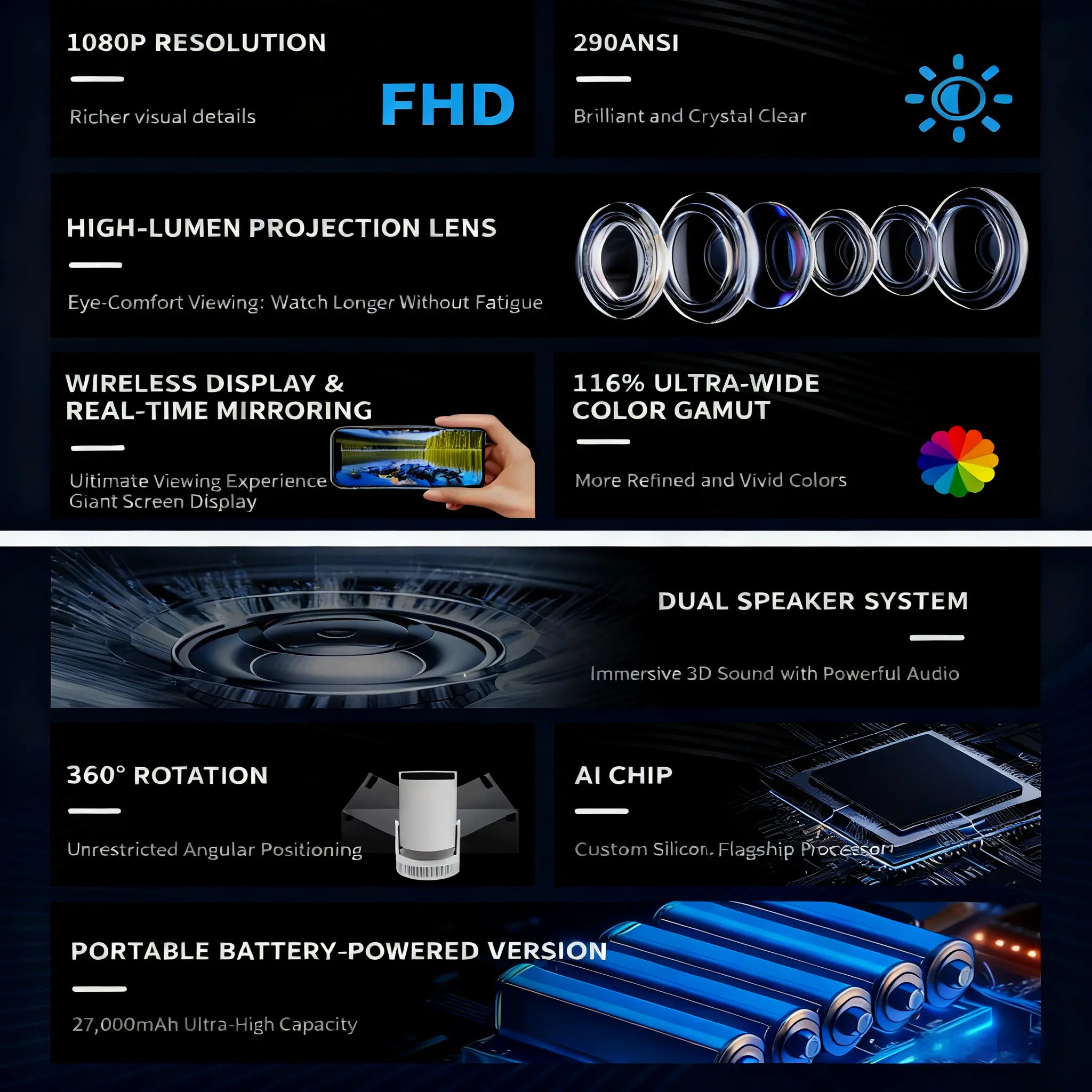 ·Connectivity Features: Equipped with WiFi6 and BT5.4, this projector ensures seamless connectivity. Ideal for modern entertainment needs. 📡