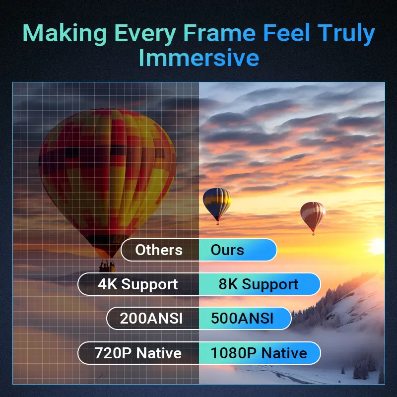 ·8K Decoding Capabilities: Experience ultra-high-definition visuals with 8K decoding. This projector delivers exceptional detail and clarity for your viewing pleasure. 📺