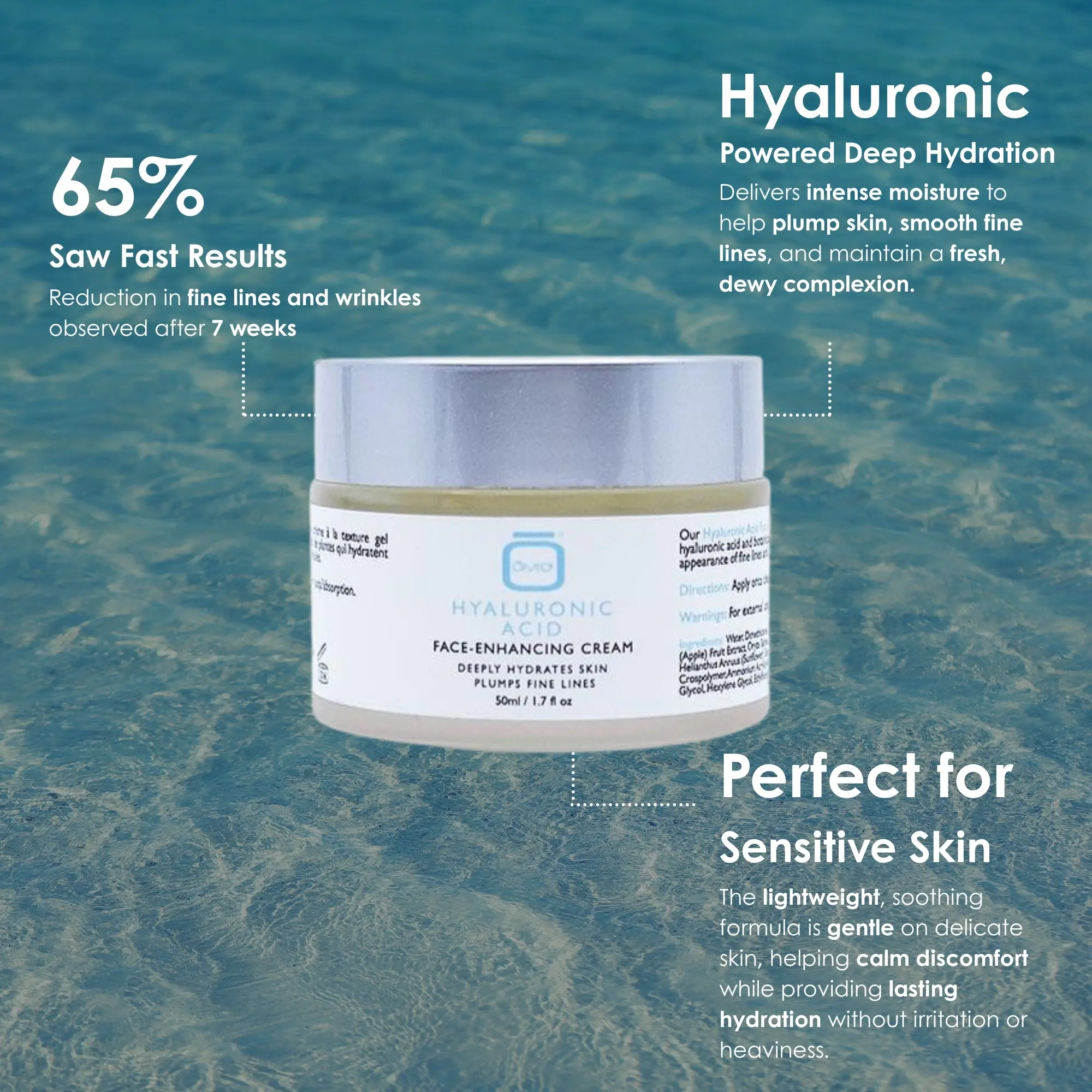 ·Hyaluronic Acid: Boosts hydration, plumps fine lines, and restores elasticity.