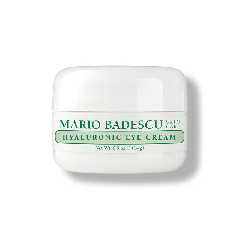 Pamper your under eyes with Mario Badescu’s #1 bestselling, decadent Hyaluronic Eye Cream. Infused with skin-loving botanicals that minimize the look of dry, fine lines, de-puff, and brighten dark circles – you can count on this trio of Hyaluronic acid, Aloe Vera, and Eyebright extract to absorb into the skin seamlessly with its glorious whipped-like texture.