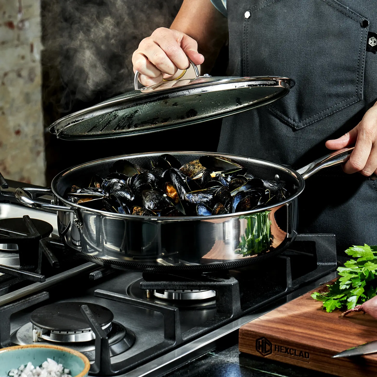Ordered the 7 quart sauté pan with lid because if you’re wanting to try Hexclad, go big, right? I LOVE everything about this pan. The very first thing I cooked was steaks for the whole family. Perfect sear cooked medium without char or burn. This pan easily cooks eggs as well. Cleanup is pretty effortless as well. Looking forward to ordering a whole set of pots and pans. Hexclad definitely lives up to the hype.