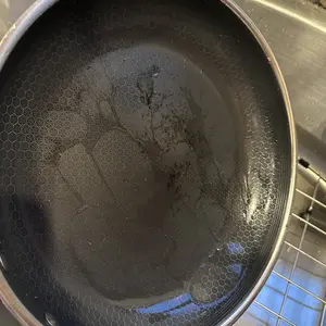 Hard to clean well, I followed the instructions for seasoning but the first time I cooked sea bass the pan is burnt stained that I can’t seem to scrub off.