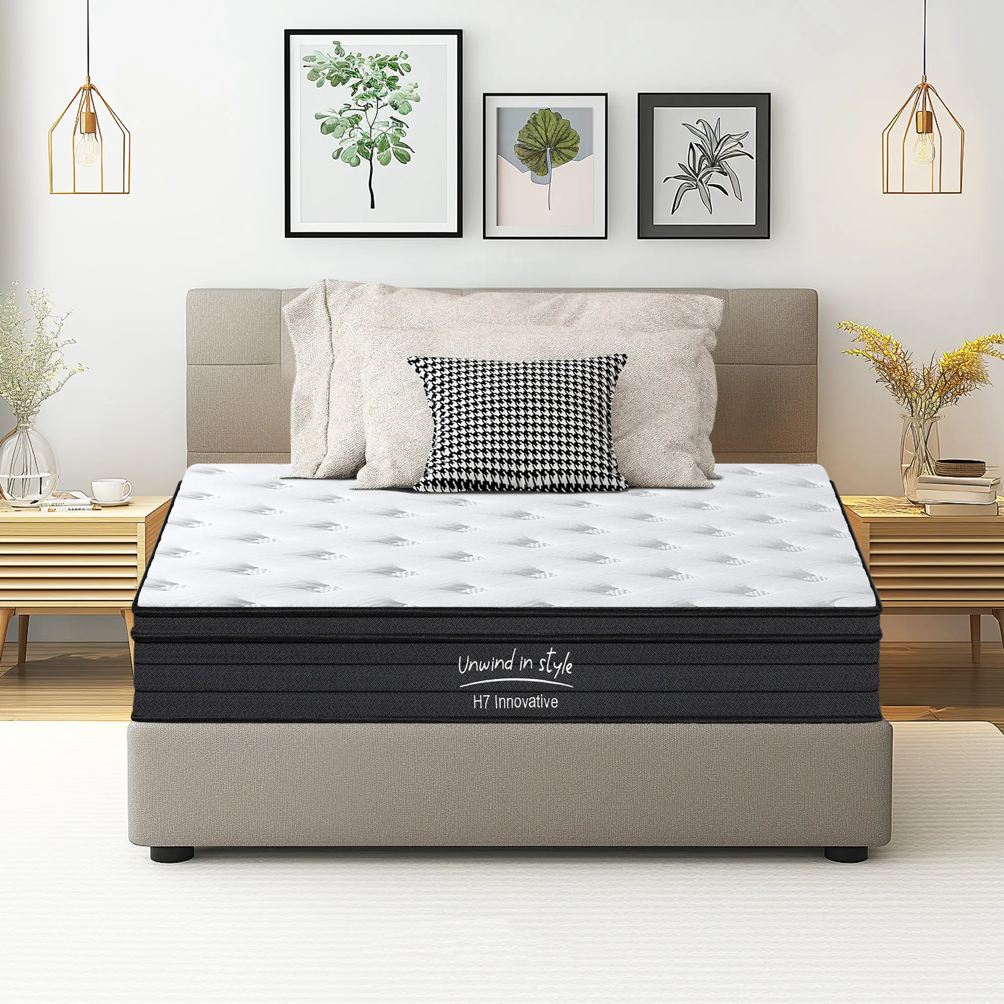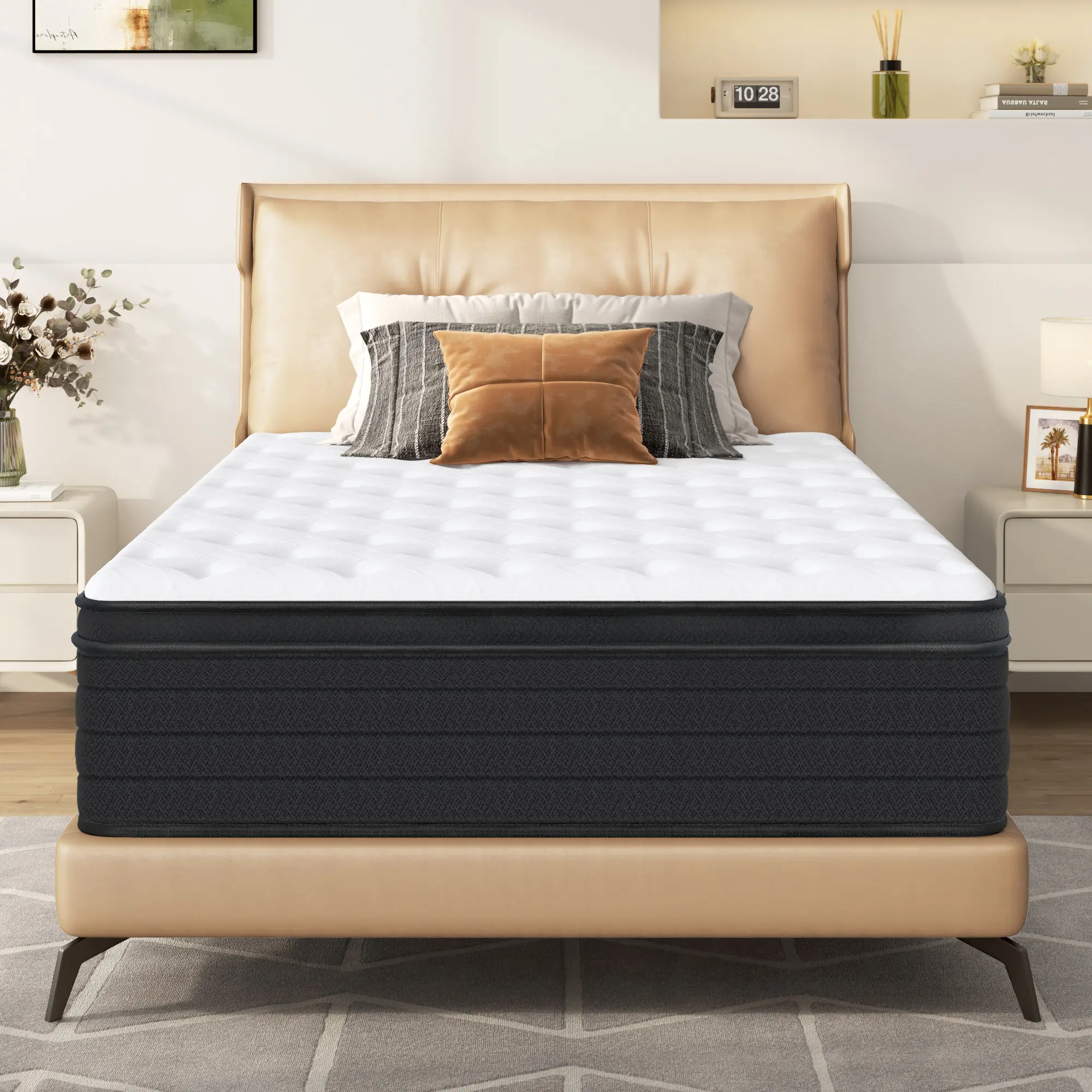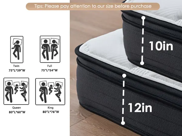 This 10-12 inch hybrid mattress offers medium firmness with gel memory foam and high-density support foams. It provides even, head-to-toe support, catering to various sleeping preferences. Reinforced mattress edges with strengthened spring coils enhance edge support and prevent sagging, ensuring a comfortable night.