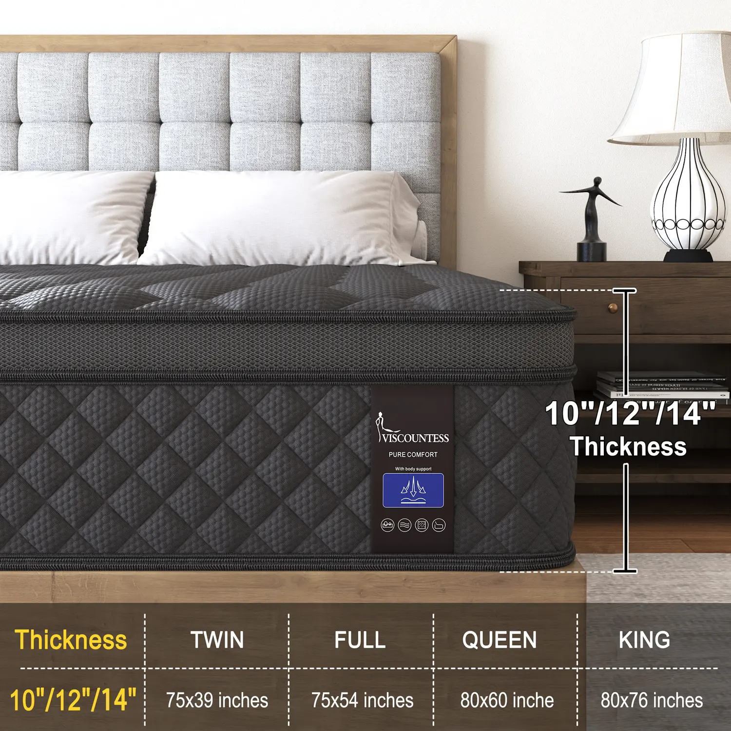 The bed was taller than I expected but was perfect for my bed frame. It’s super soft it doesn’t squeak when you sit on it. I’m pregnant so I have hip pain if I lay on one side to long since getting this bed it doesn’t hurt.