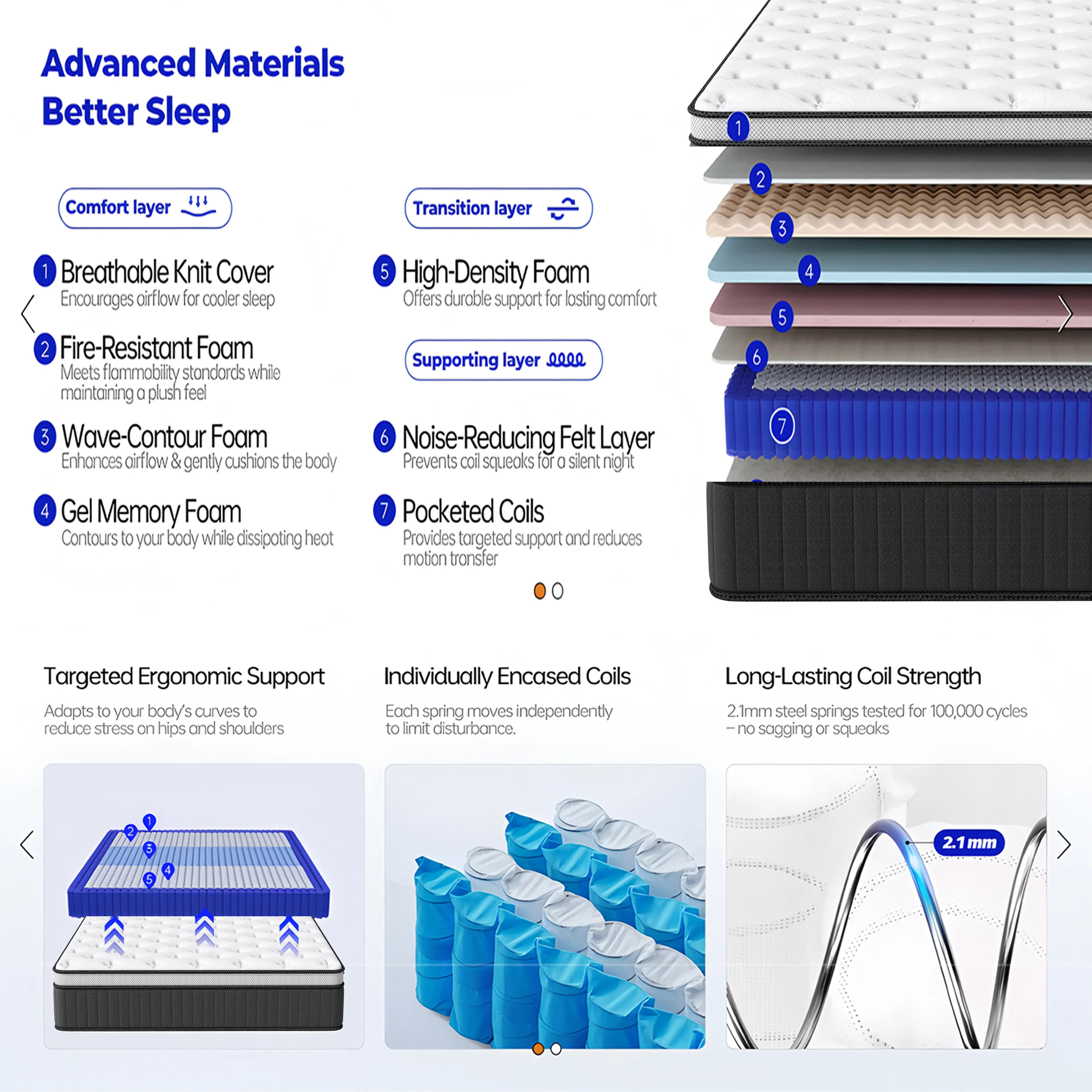 ·Individually Wrapped Pocket Springs: Provides strong support for your body. 🌟