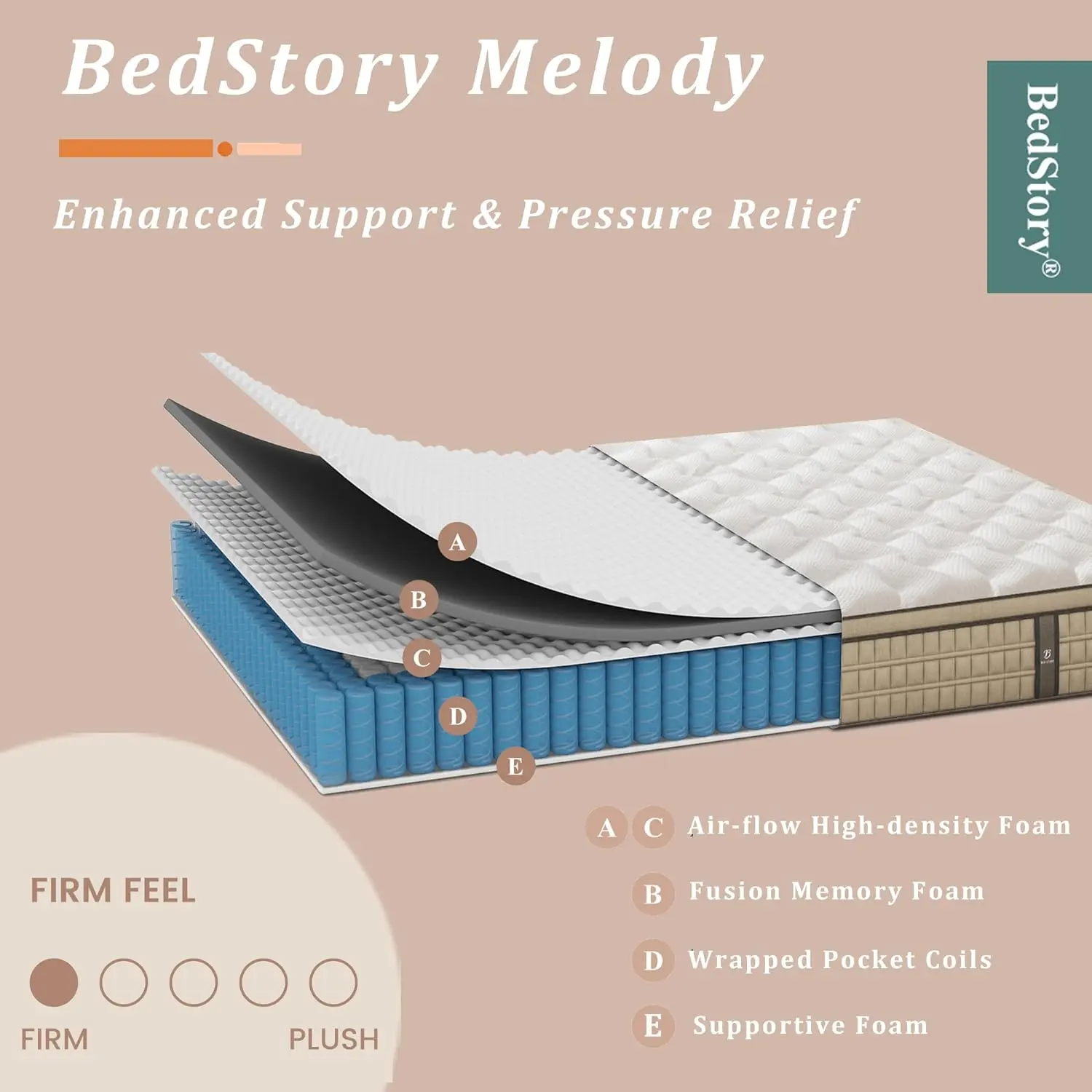 Optimal Support for All Sleepers: The BedStory Melody mattress combines advanced 38D fusion memory foam with a robust 1.88mm independent pocket spring system, delivering exceptional support and comfort tailored to various body types.