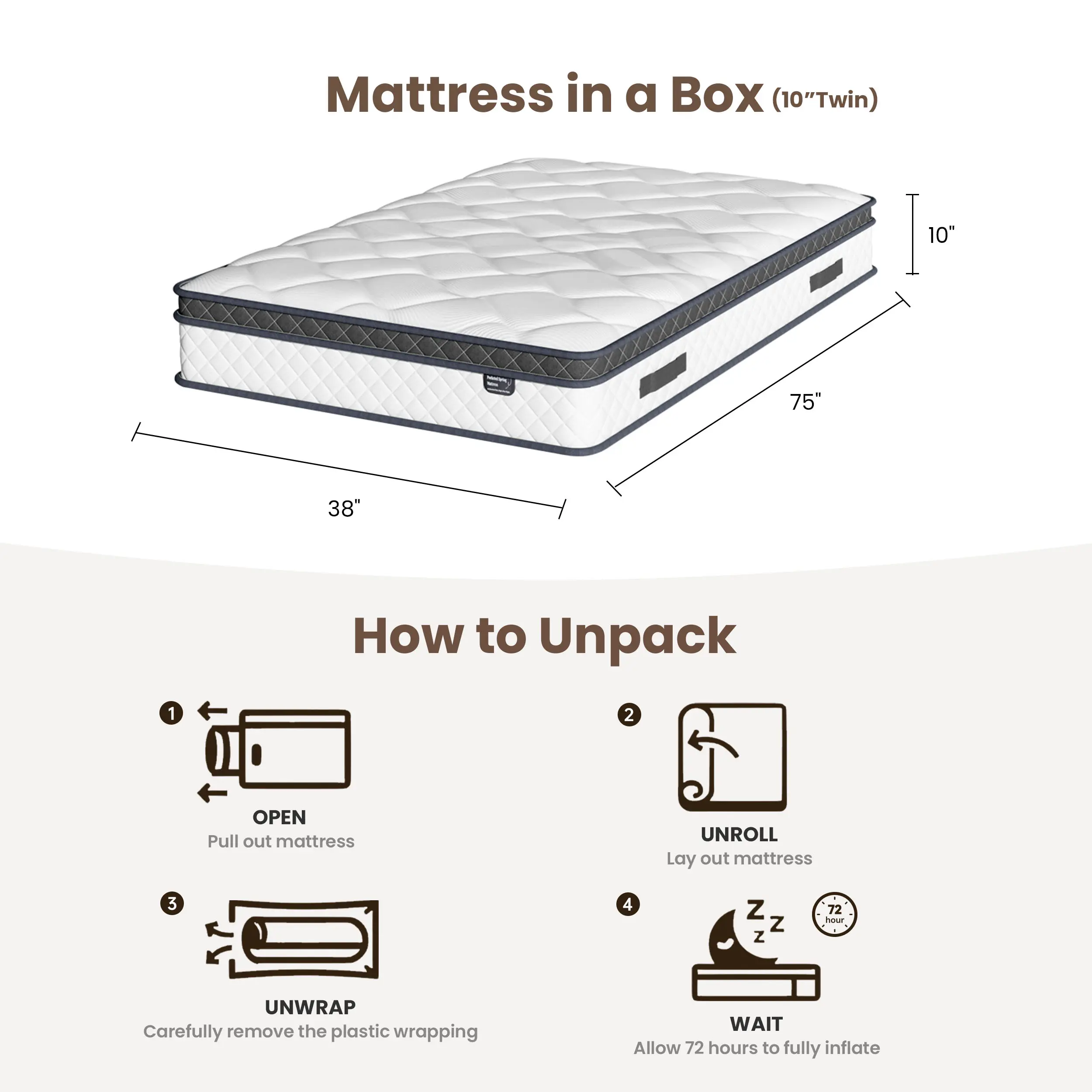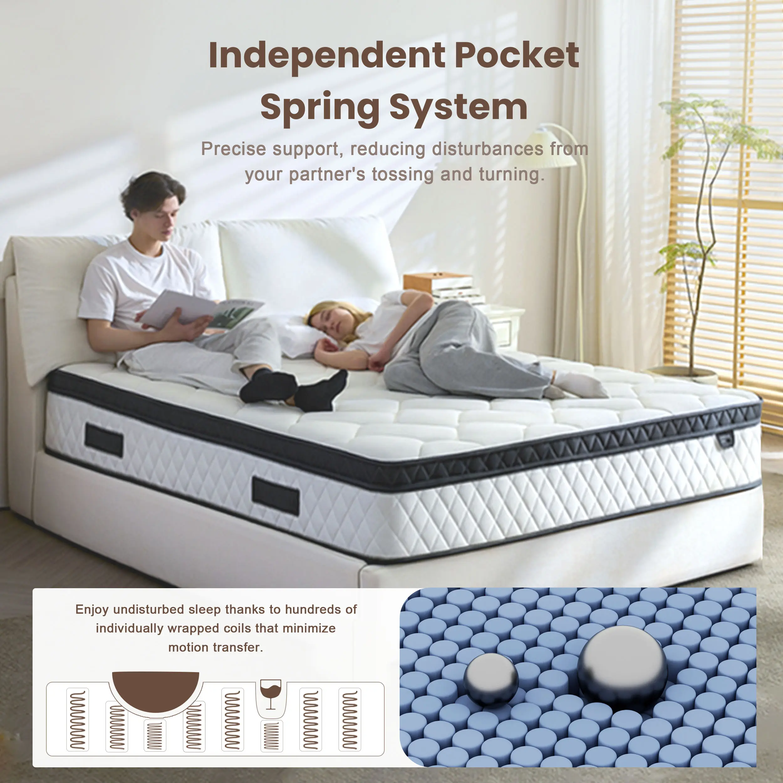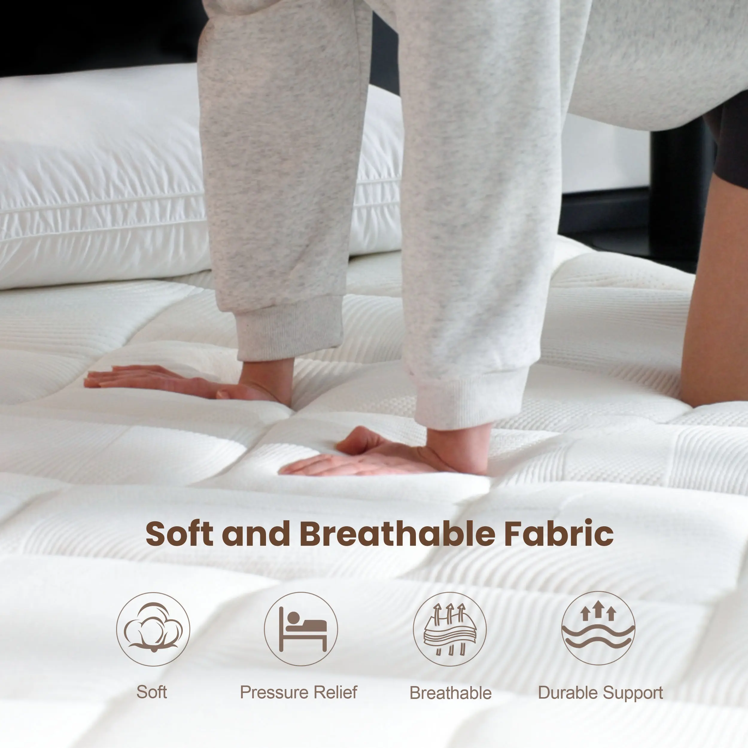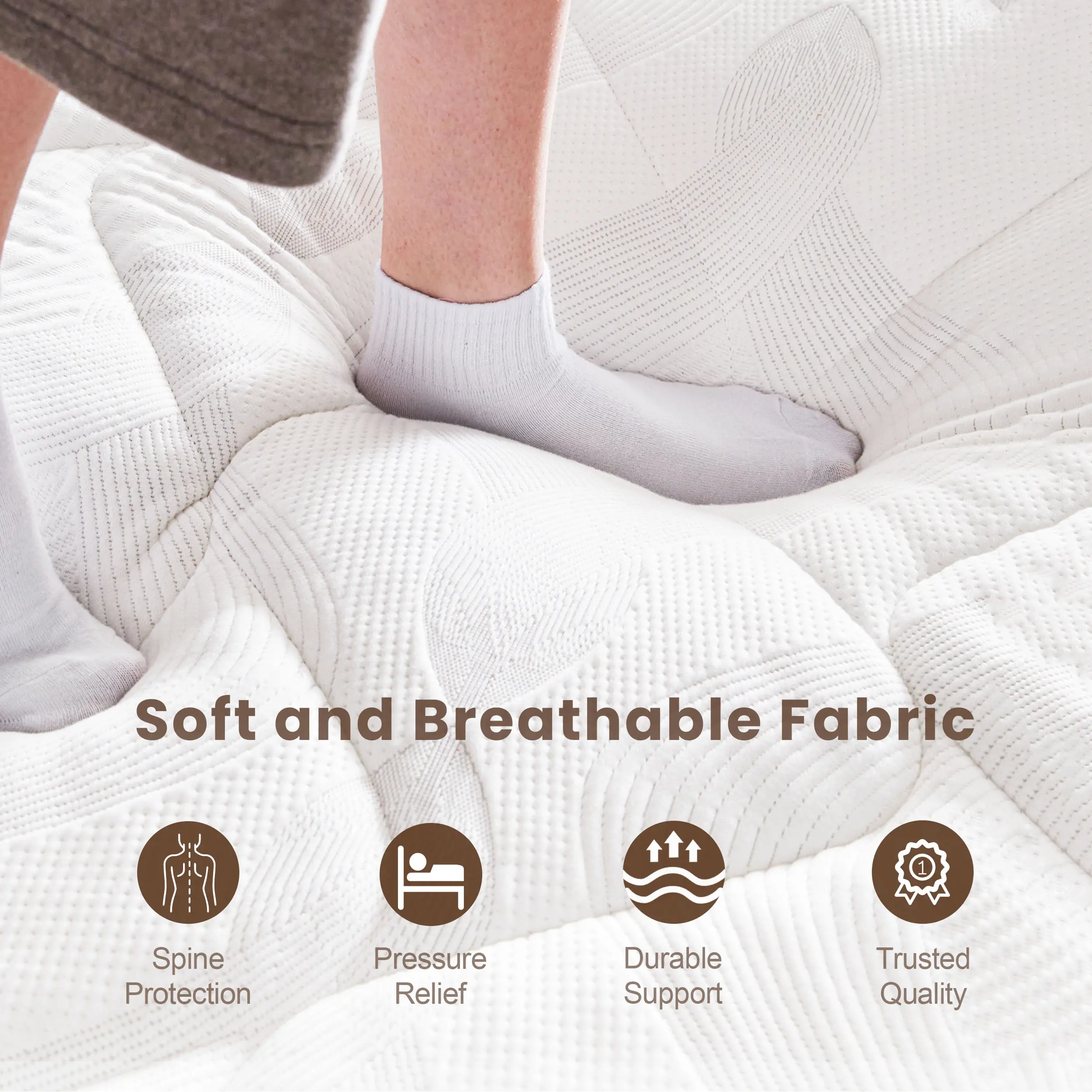 ·Fiberglass-Free Hybrid Mattress: Featuring gel memory foam and individually wrapped pocket coils, this mattress provides exceptional pressure relief and adapts to any sleeping position. It's completely fiberglass-free, ensuring a safer and healthier sleep environment.