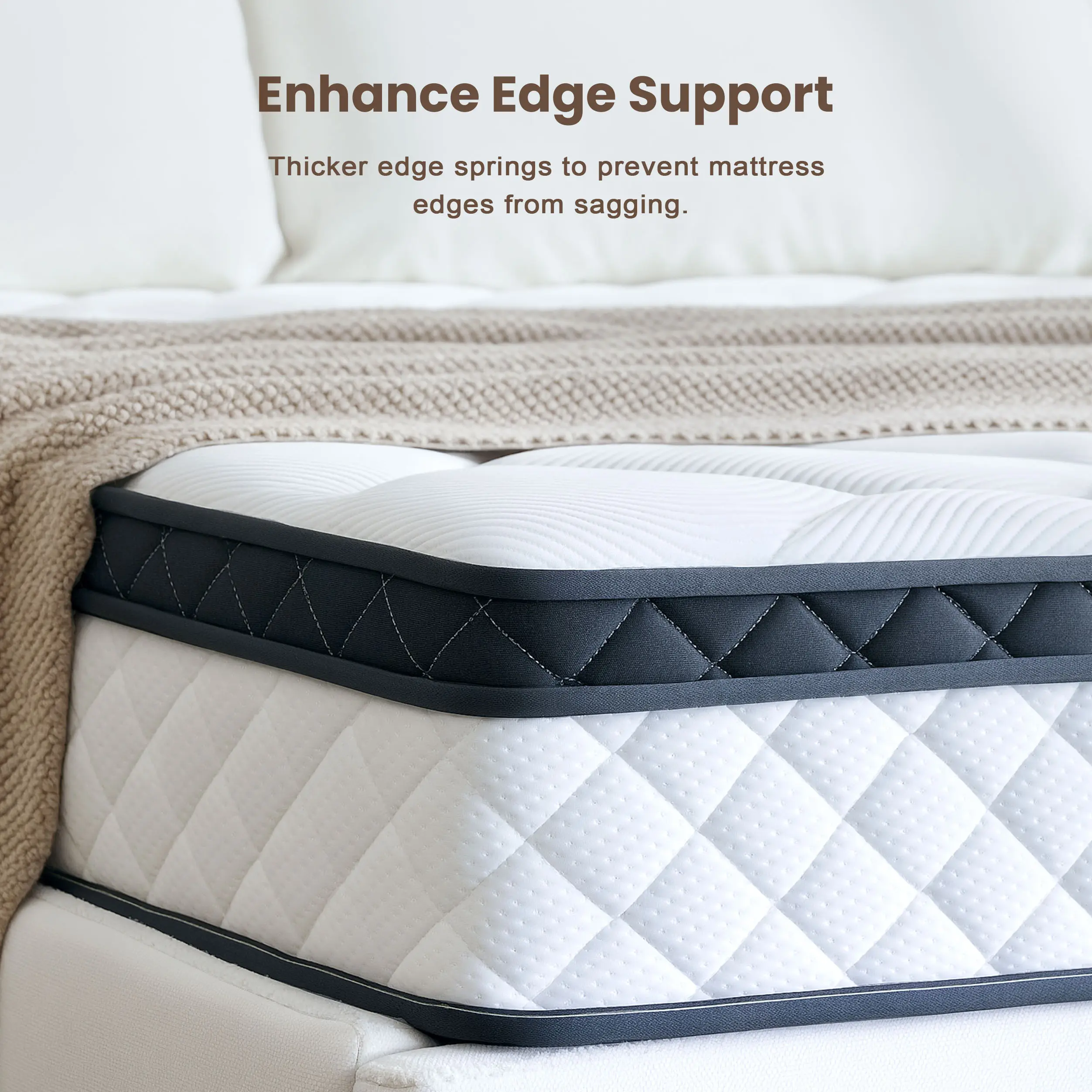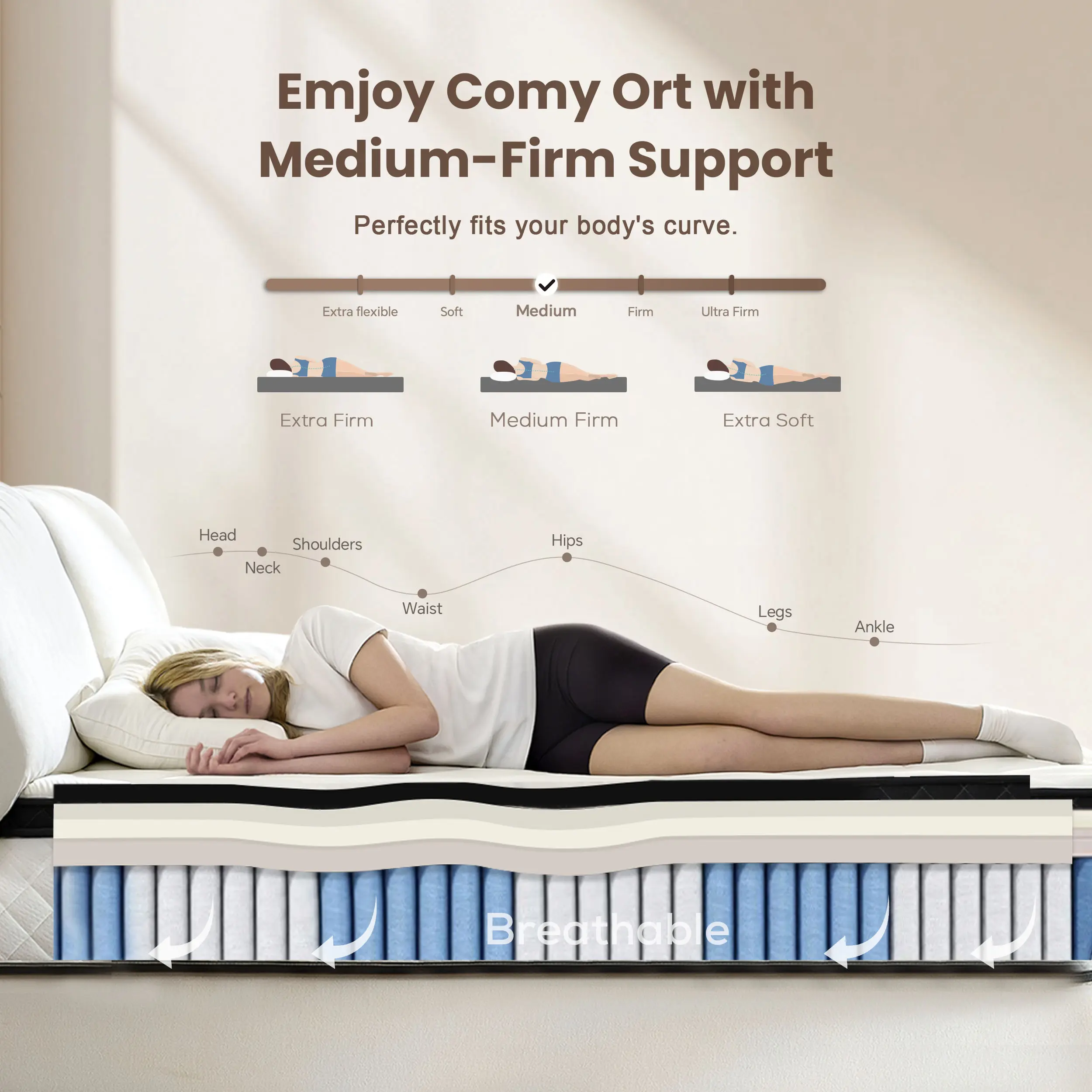 ·Durable Support with Thicker Coils: This queen-size hybrid mattress features thicker, high-quality pocketed coils that provide long-lasting stability and support, ensuring a comfortable and durable sleep experience for years to come