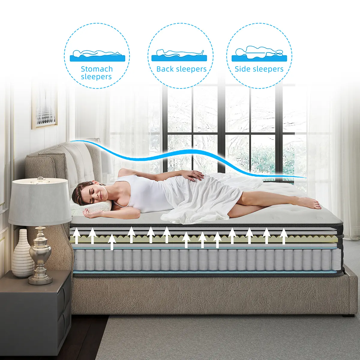 Exquisite Seven-Layer Build: Combining independent springs with memory foam, each layer is meticulously designed. It contours precisely from neck to lower back, effectively relieving body pressure.