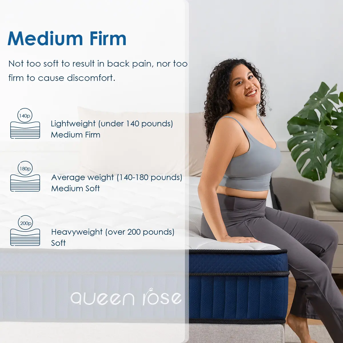·Medium firmness comfort supporting individuals with weight up to 200 pounds (total weight support of 450 pounds for Queen/King Mattress)