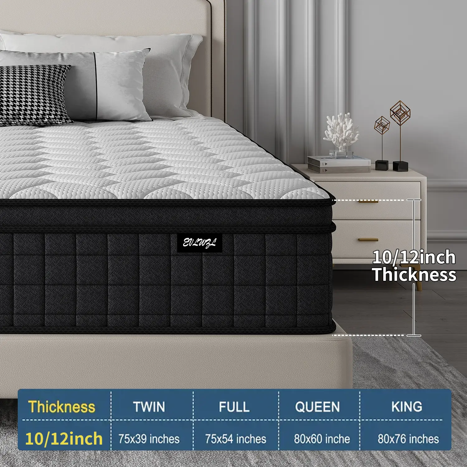 El colchón no mide de alto lo que dice lo pedí de 12” y me llegó de 9” tampoco es muy cómodo personalmente no me gusta que sea tipo colchoneta porque te acuestas y se hunde