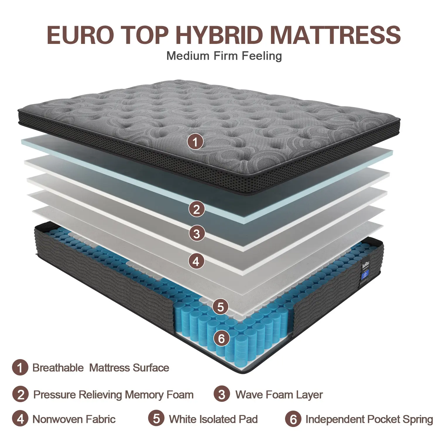 ¡ăMattress in a Box, Fits All Bed Framesă: Hybrid mattresses are delivered compressed, rolled up, vacuum-sealed, and boxed for a fun and easy setup. The mattresses are suitable for most platform beds, traditional frames, spring springs, and even floors. We recommend placing the mattress in a ventilated area and waiting 72 hours after receipt to fully unroll.