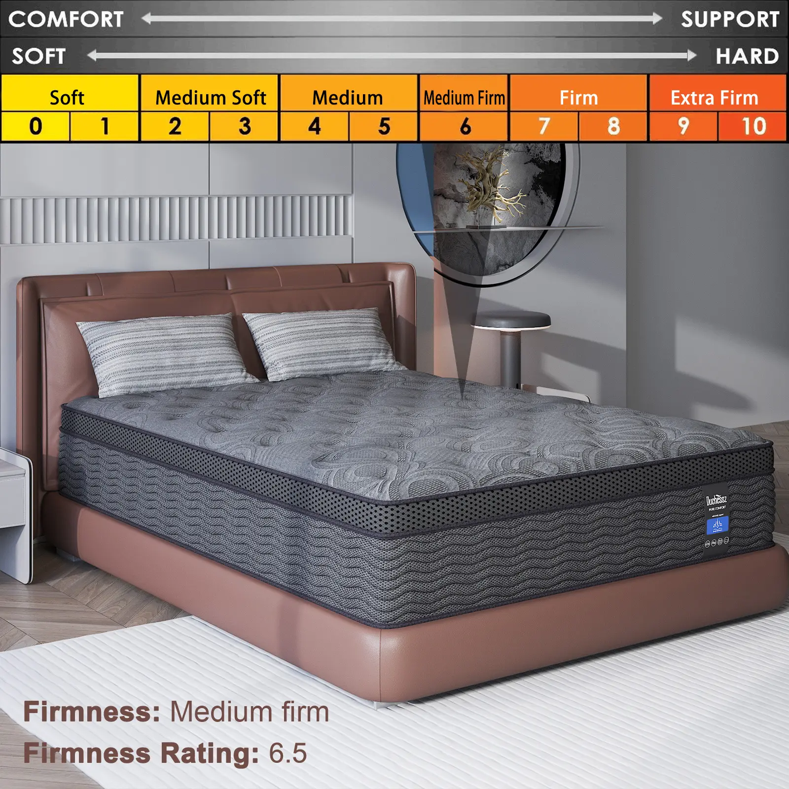 ¡ăHigh-Quality Materială: The Duchess Hybrid Spring Mattress features a Turkish organic soft knitted fabric that is breathable and skin-friendly. The mattress also has a breathable mesh on the side to dissipate heat and regulate body temperature effectively, ensuring a cool and comfortable sleep all night long.