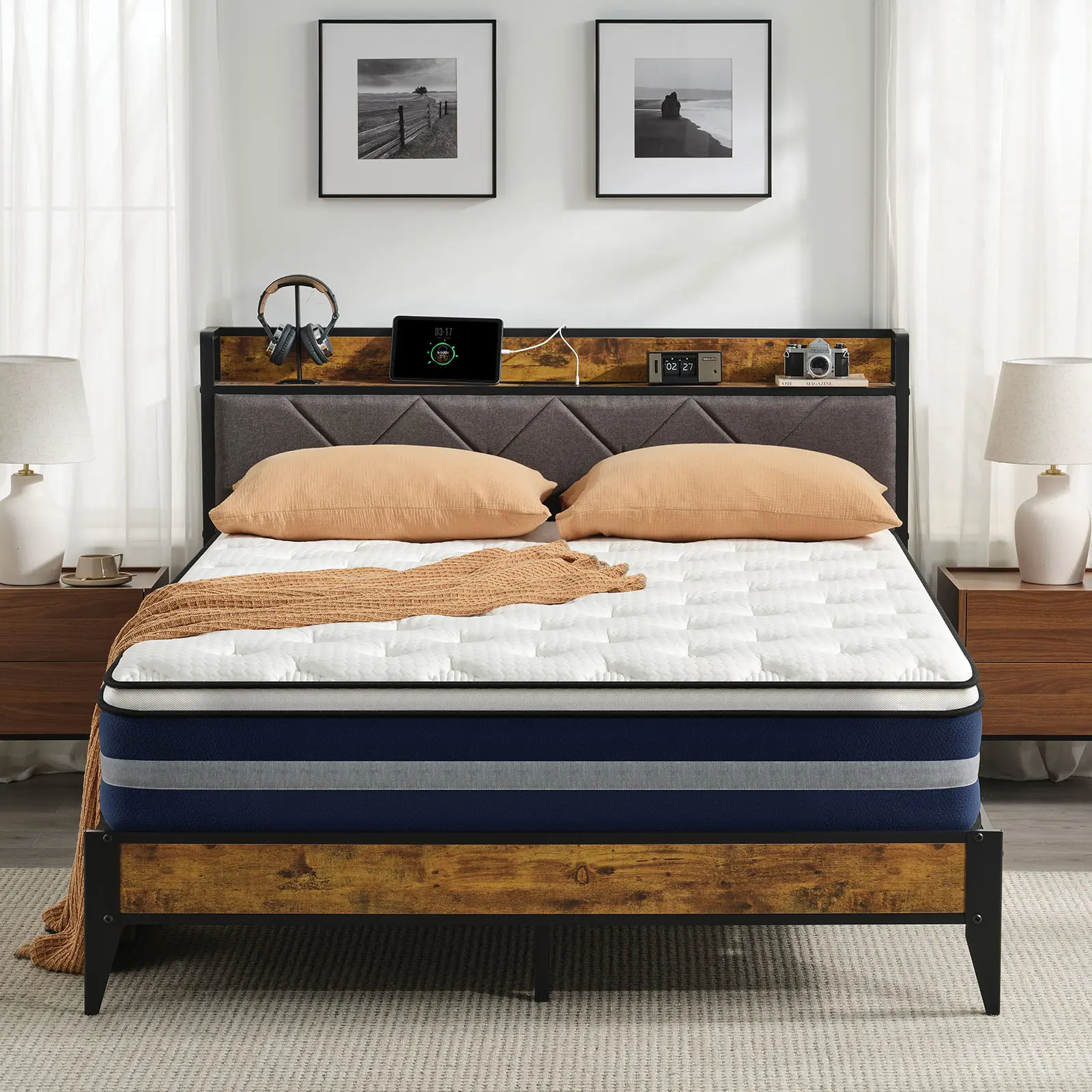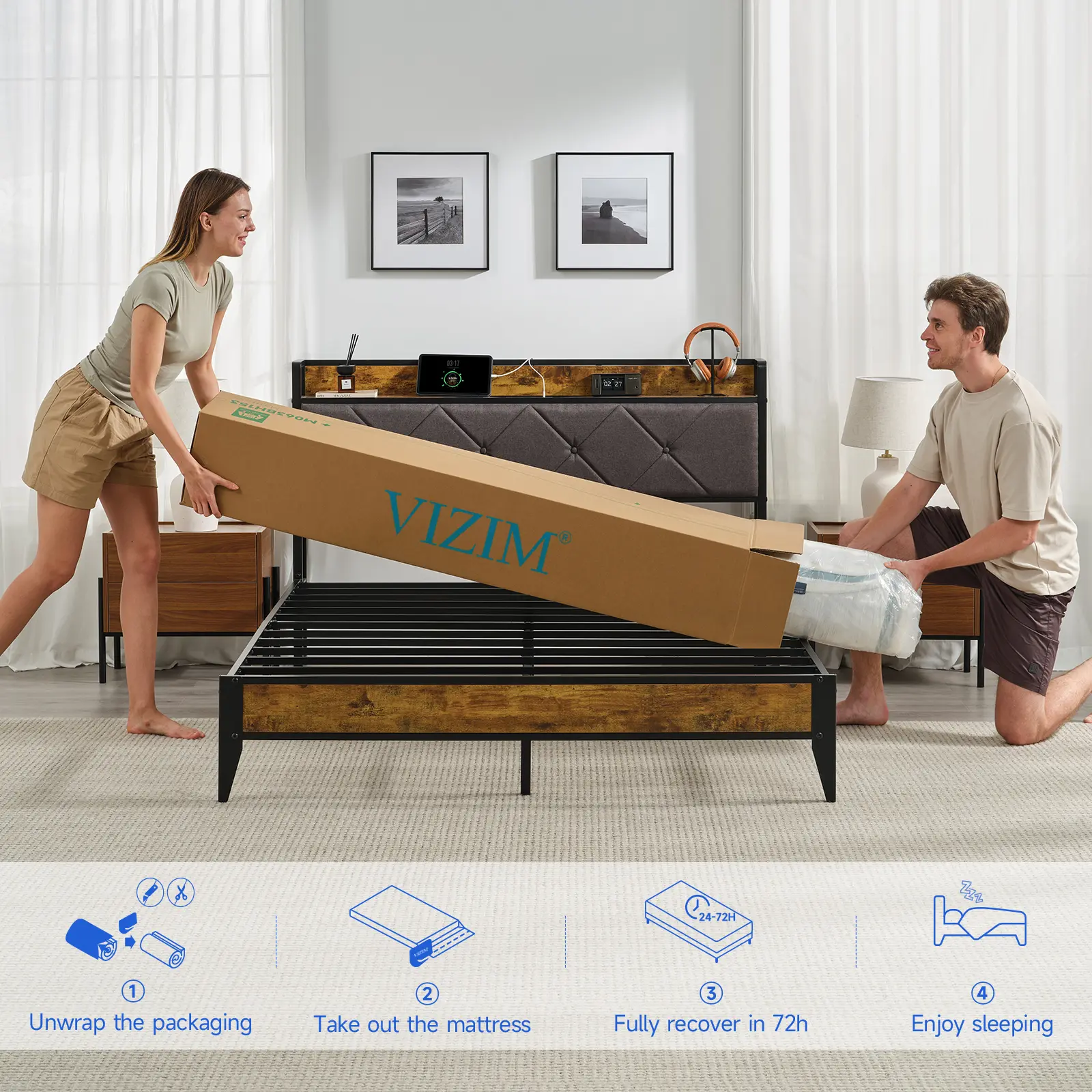 He had this mattress for about a week now. I got the 12-inch queen. It’s firm, it looked fully expanded after only a couple hours. (The picture is right out of the box.) The shipping was fast even during the busy holidays. I also got the bed frame from the TikTok shop.