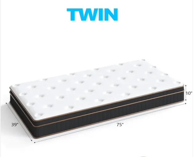·Perfect Twin Size & Stylish Design: Measuring 38" x 75" (standard Twin size), this10/ 12-inch thick mattress fits most Twin bed frames. The white surface with black-gold trim creates a sophisticated look, easily complementing various bedding styles and room decors, from minimalist to modern.