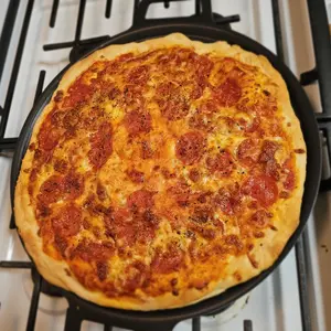 I received my pizza steel today and just had to make a pizza right away. This pan was so easy to use and the pizza was absolutely amazing. It does not stick to the pan at all. The crust turned out perfectly as well.